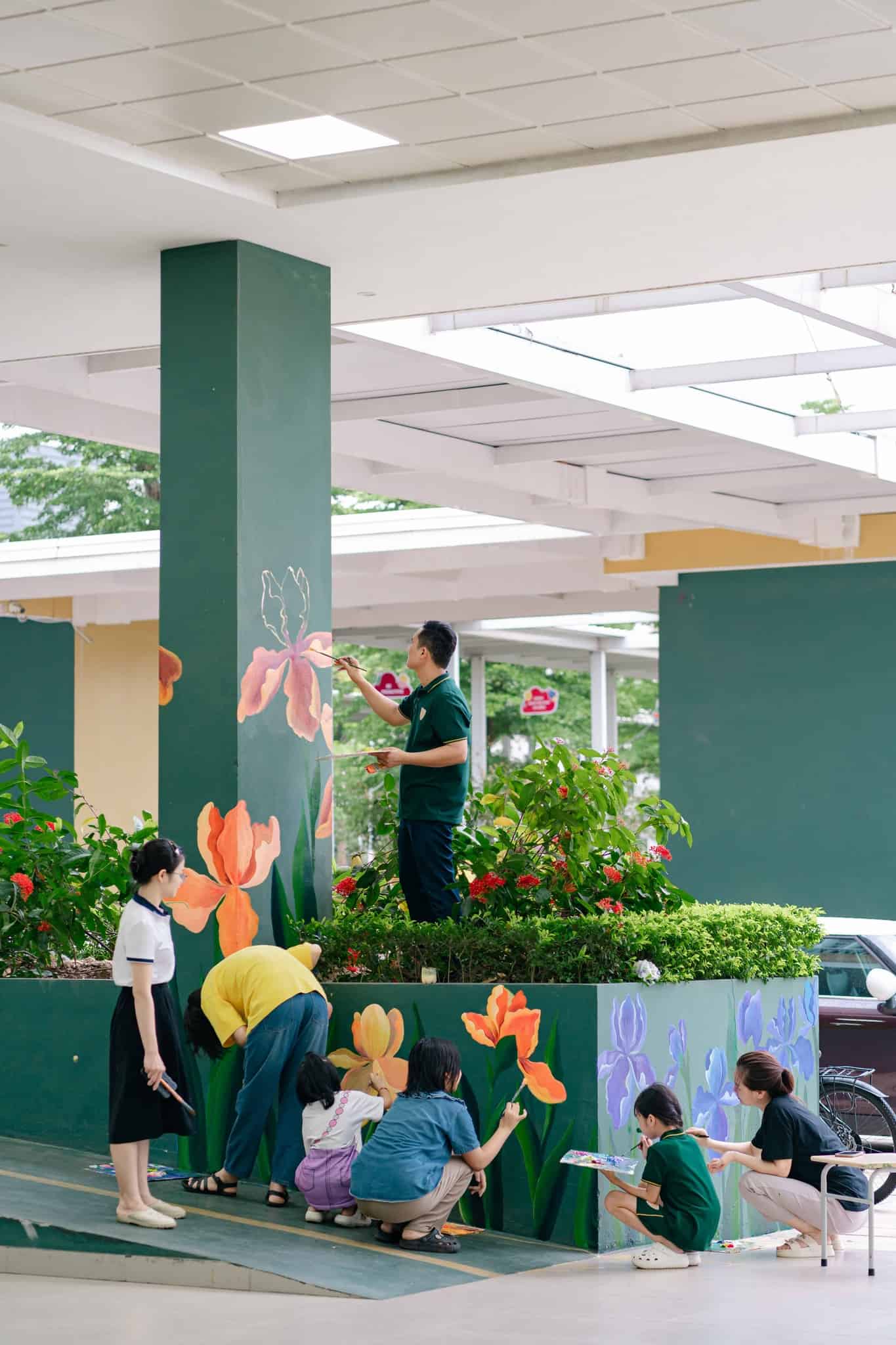 Hôm nay, bật mí với chúng mình một trong những góc vô cùng mới mẻ tại Iris School nha. Đó chính là những chiếc cột, những bức tường màu xanh đơn sắc đặc trưng của Iris qua bàn tay khéo léo của cô Tổng Hiệu trưởng, các thầy cô giáo tổ ATM và Irisers đam mê hội hoạ đã trở nên vô cùng sống động với những bông hoa diên vỹ xinh đẹp đua nhau khoe sắc.