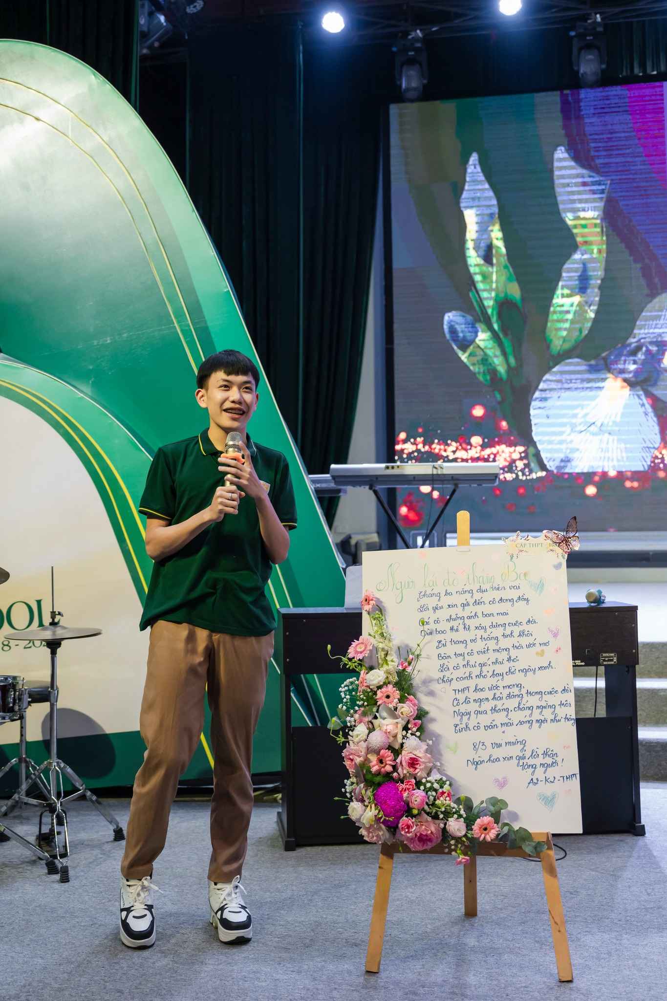 Không chỉ dừng lại ở nghệ thuật cắm hoa, chương trình còn mang đến những tiết mục văn nghệ đặc sắc. Giai điệu ngọt ngào của những bài hát, những điệu múa duyên dáng hay những lời chúc yêu thương từ các con chính là món quà tinh thần ý nghĩa, làm rạng rỡ nụ cười trên gương mặt của các cô giáo trong ngày đặc biệt này.