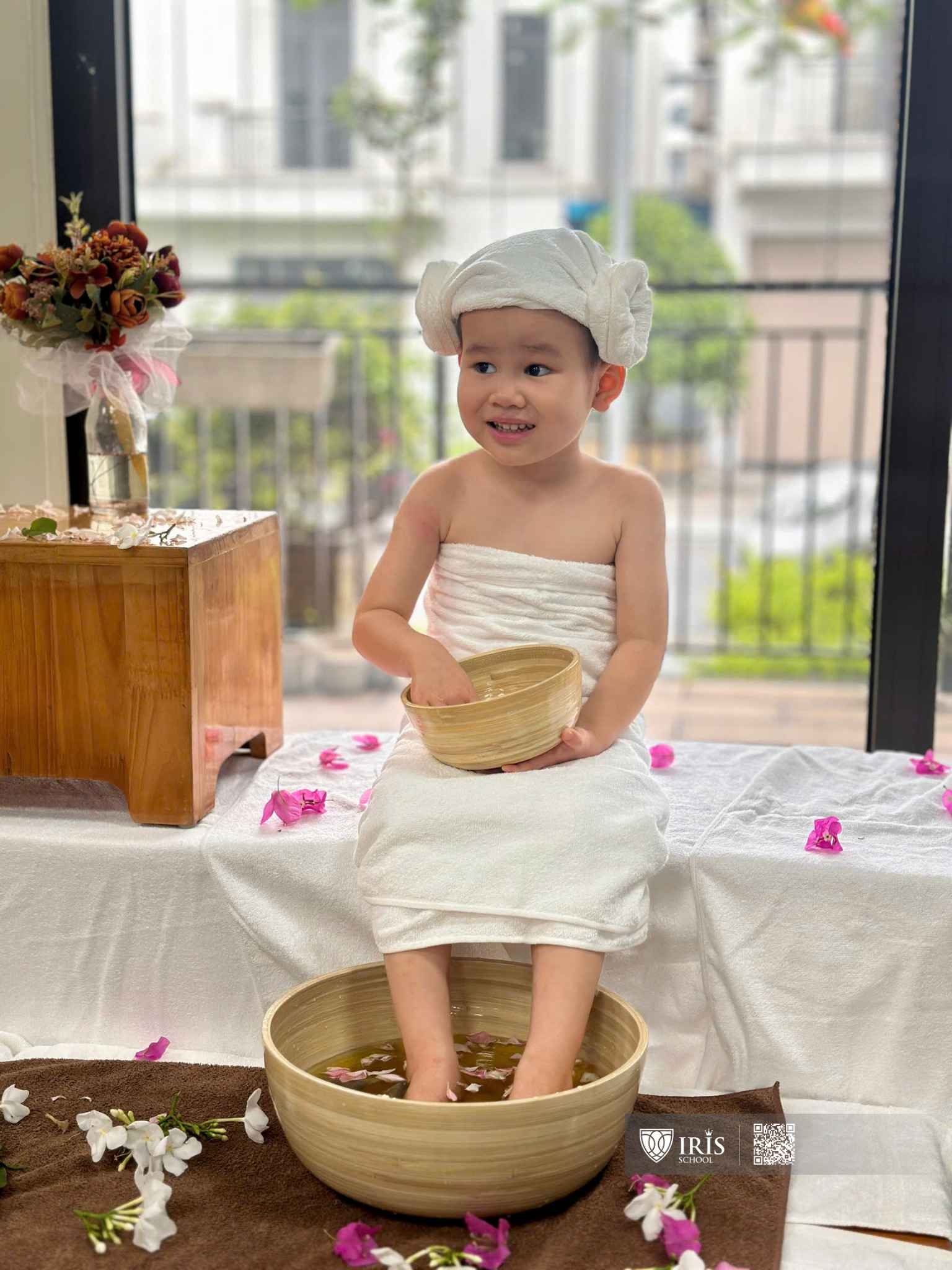 Các con được ngâm chân với nước hoa hồng thơm dịu, thư giãn cùng với các loại thảo dược tốt cho sức khỏe. Không chỉ là hoạt động vui chơi, đây còn là cơ hội tuyệt vời để các con gắn kết, học cách quan tâm và chăm sóc bản thân. Khi các con khỏe mạnh, tự tin và tích cực, các con sẽ lan tỏa sự yêu thương đến ba mẹ, thầy cô và những người xung quanh.