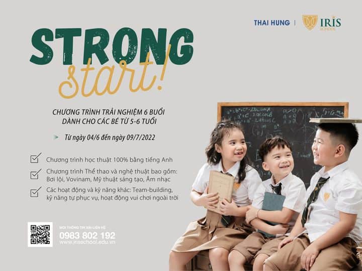“Strong Start” là một chương trình mới vô cùng đặc biệt mà trường Iris dành nhiều tâm huyết xây dựng để giúp các em học sinh 5 – 6 tuổi chuẩn bị bước vào lớp 1 có cơ hội trải nghiệm chương trình giáo dục tích hợp Pearson Edexcel, bồi dưỡng năng lực tiếng Anh và các kỹ năng sống, nâng cao thể chất thông qua các hoạt động trải nghiệm và lớp học trải nghiệm, khởi tạo sự thích thú học tập của các em học sinh.