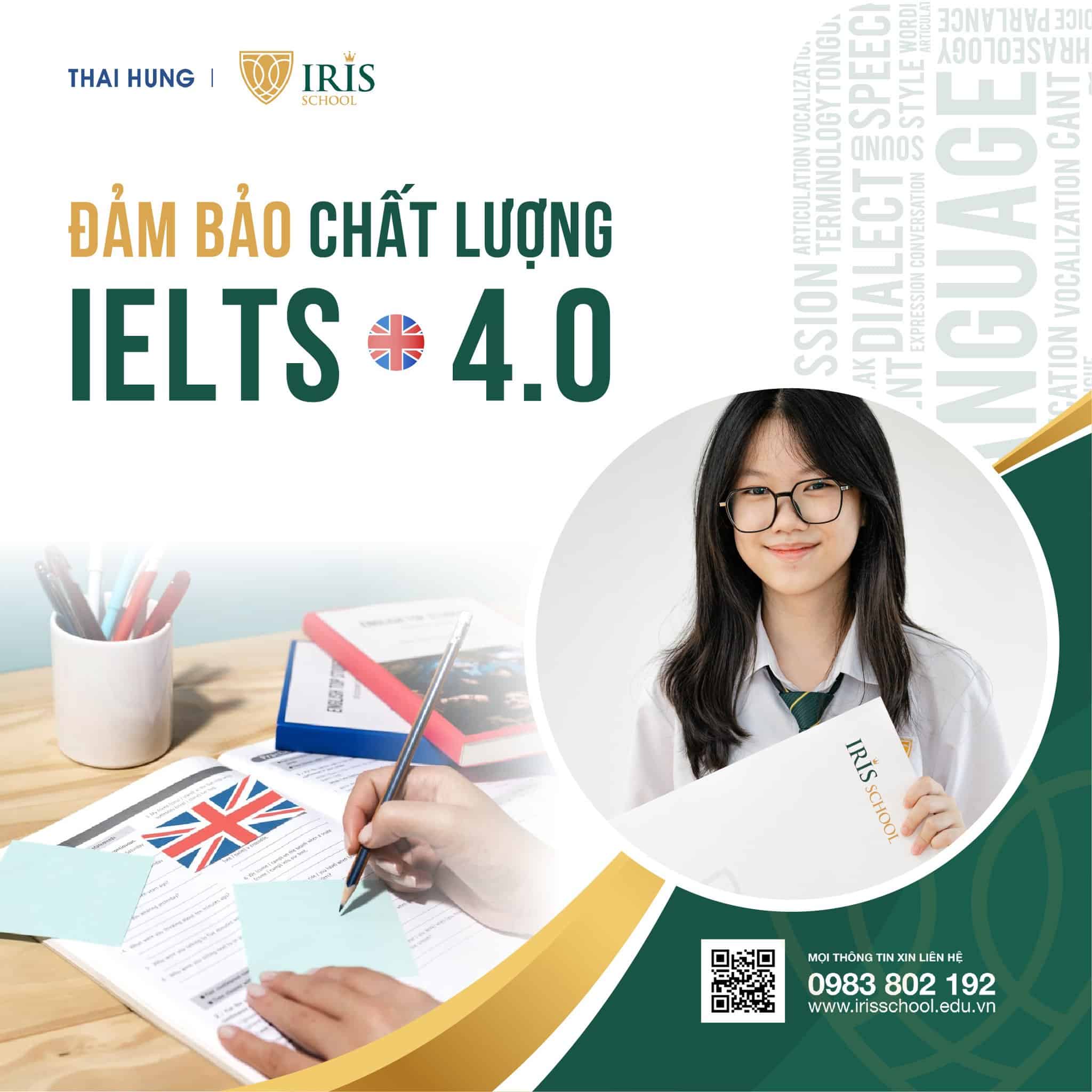 Tại cấp THPT, Irisers được học tập trong một môi trường năng động, học và sử dụng tiếng Anh cường độ cao. Học sinh được rèn luyện tích cực trong các hoạt động chính khóa và đặc biệt được bồi dưỡng về tiếng Anh học thuật trong các tiết học IELTS. Trường Iris đảm bảo học sinh tốt nghiệp THPT sẽ sở hữu chứng chỉ IELTS với điểm tối thiểu 4.0 – được xét tương đương điểm 10 và được miễn thi tiếng Anh/ngoại ngữ trong kỳ thi tốt nghiệp THPT quốc gia.