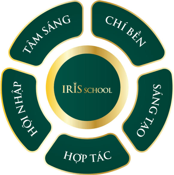 Trường Iris đề cao các giá trị: Tâm sáng, Chí bền, Sáng tạo, Hợp tác và Hội nhập. Những giá trị này được lấy cảm hứng từ bốn trụ cột của giáo dục do UNESCO đề xuất, với sự xác định: “Học để biết, học để làm, học để hoàn thiện bản thân và học để chung sống”.