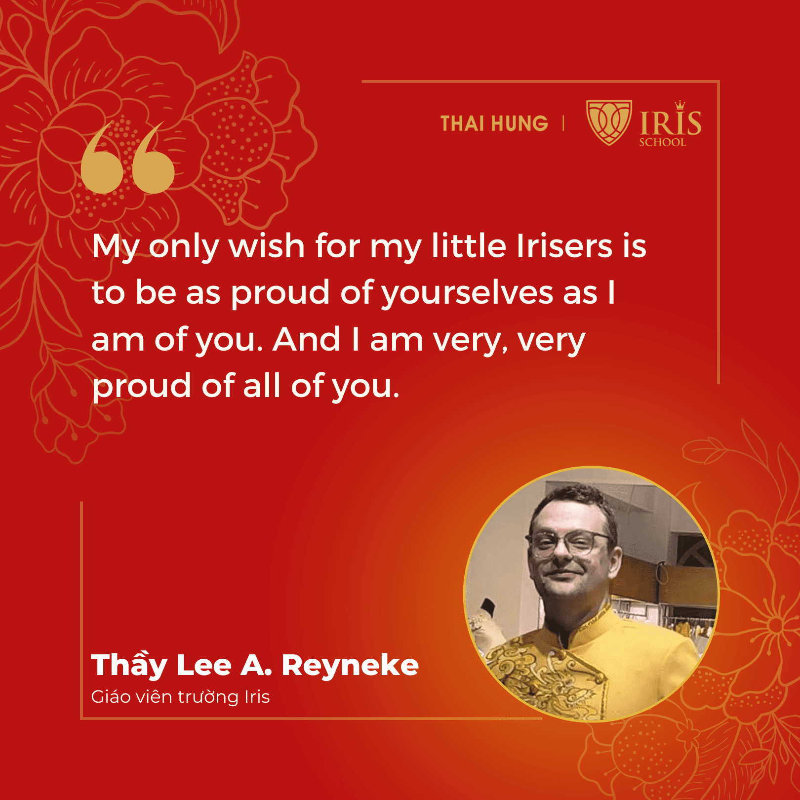 Điều ước duy nhất của tôi dành cho các Irisers bé nhỏ dịp năm mới Quý Mão 2023 chính là hãy tự hào về bản thân các con như thầy tự hào về các con. Thầy rất, rất tự hào về tất cả các con!”