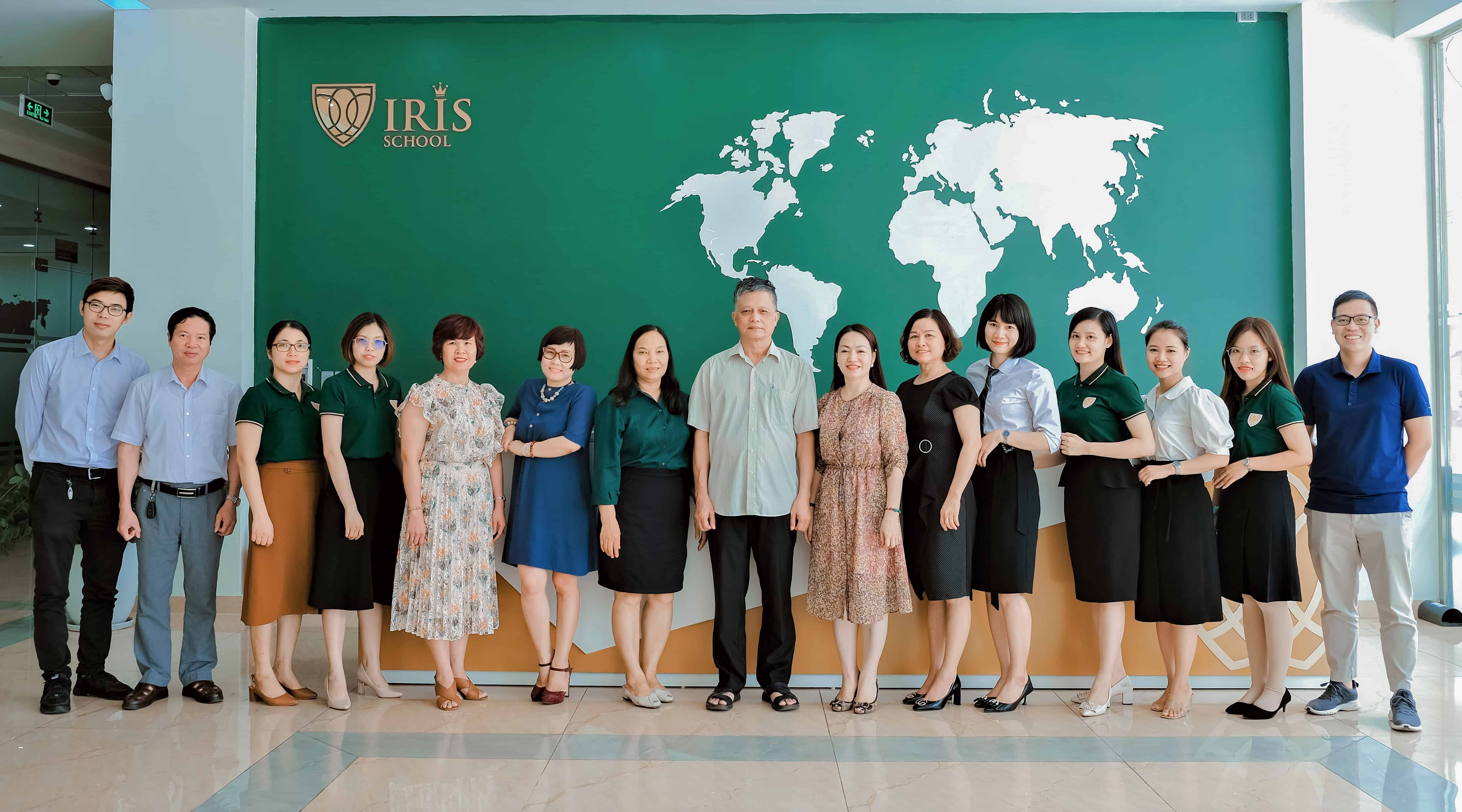 Thầy Nguyễn Mạnh Sơn (chính giữa) cùng Ban Giám hiệu Trường Iris và các thầy cô giáo cấp THPT