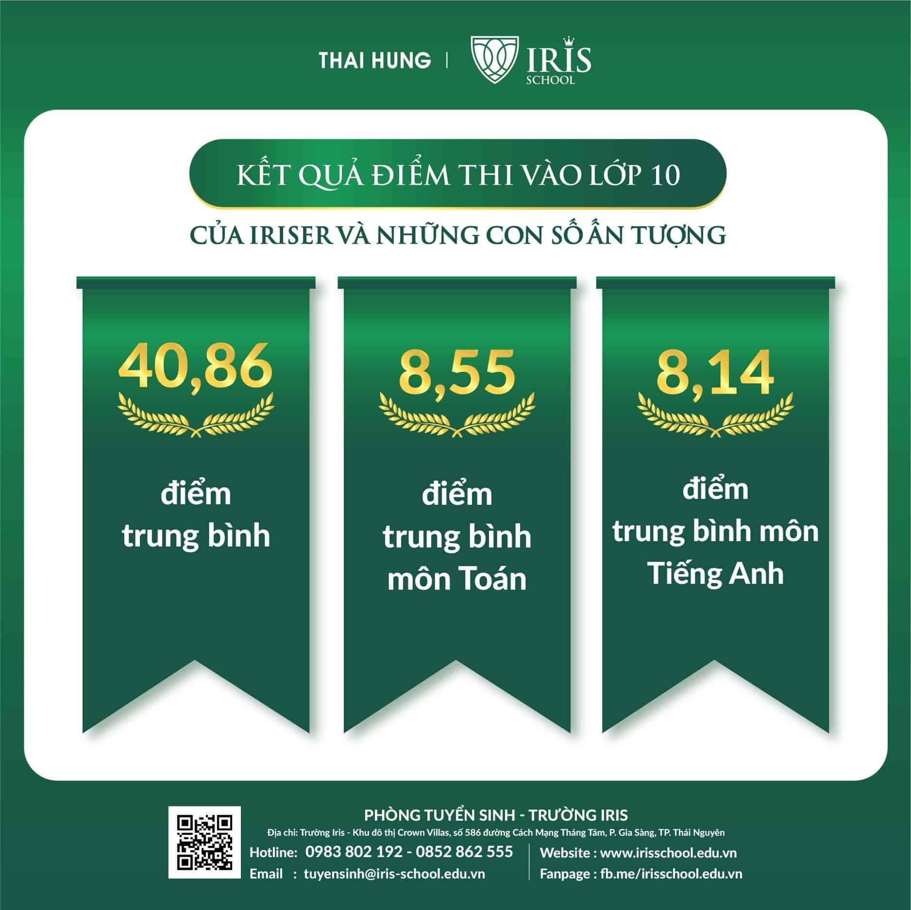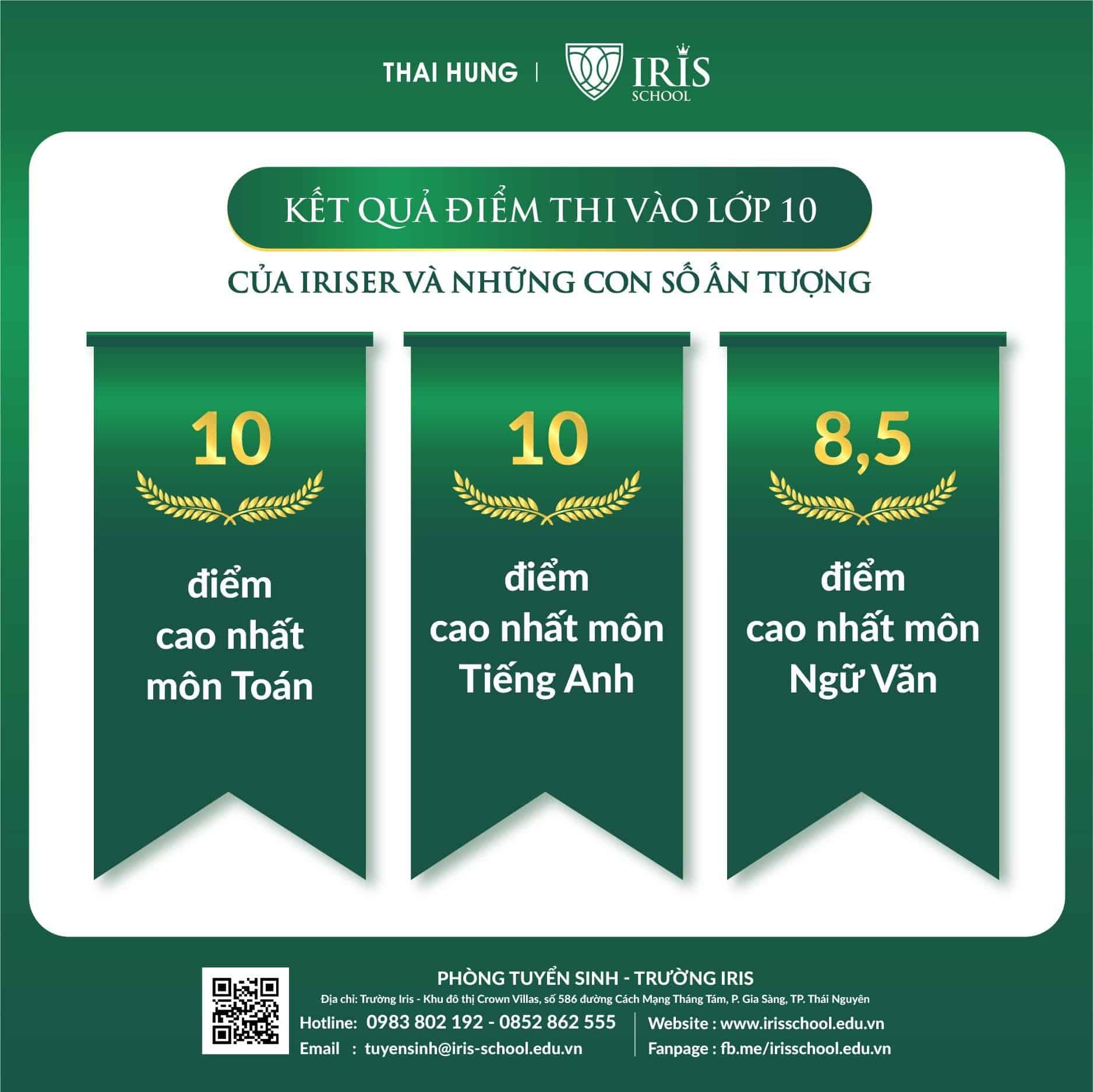 Hơn thế nữa, Trường Iris cũng nằm trong Top 2 Trường THCS có điểm trung bình các môn thi vào lớp 10 cao nhất tỉnh Thái Nguyên.