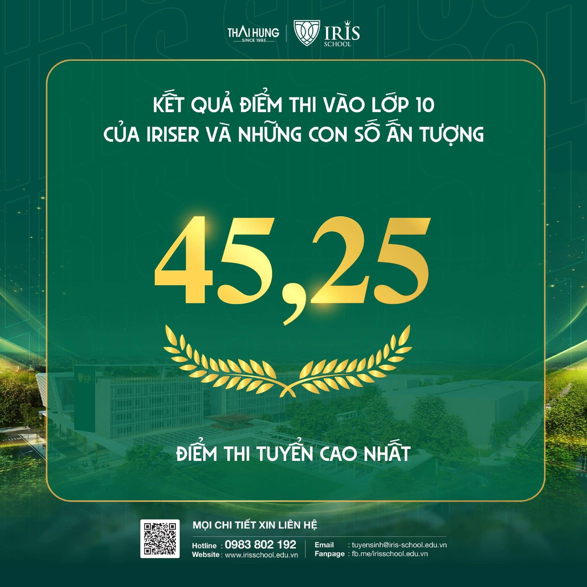 Một lần nữa xin được chúc mừng thành tích tuyệt vời của tất cả Irisers tham gia kỳ thi vào lớp 10 năm nay. Đặc biệt, chúc mừng bạn Vũ Yến Nhi đã trở thành Iriser có điểm thi tuyển cao nhất với 45.25 điểm.