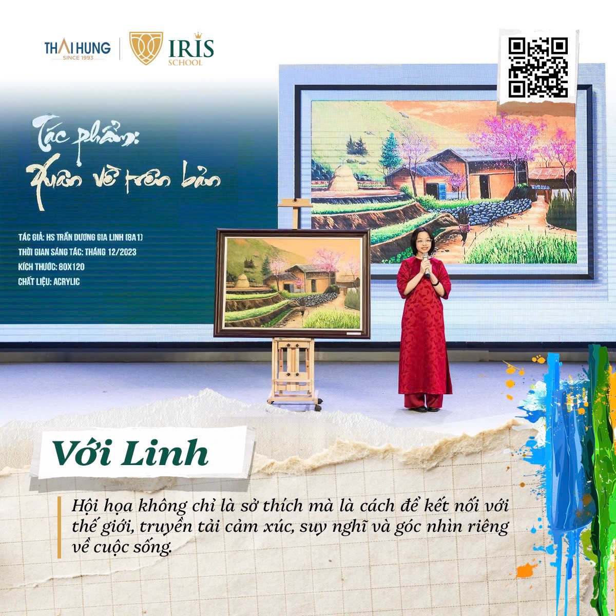“Trong thế giới nơi ai ai cũng bàn về khoa học kỹ thuật, về AI, về công nghệ tương lai, có một cô bạn vẫn lặng lẽ nhưng đầy bản lĩnh theo đuổi đam mê hội hoạ – đó là Trần Dương Gia Linh, học sinh lớp 9A1. Với tâm hồn nhạy cảm và đôi tay khéo léo, Gia Linh đã ghi dấu ấn bằng những tác phẩm hội họa tinh tế, giàu cảm xúc, khiến thầy cô, bạn bè không khỏi ngưỡng mộ.