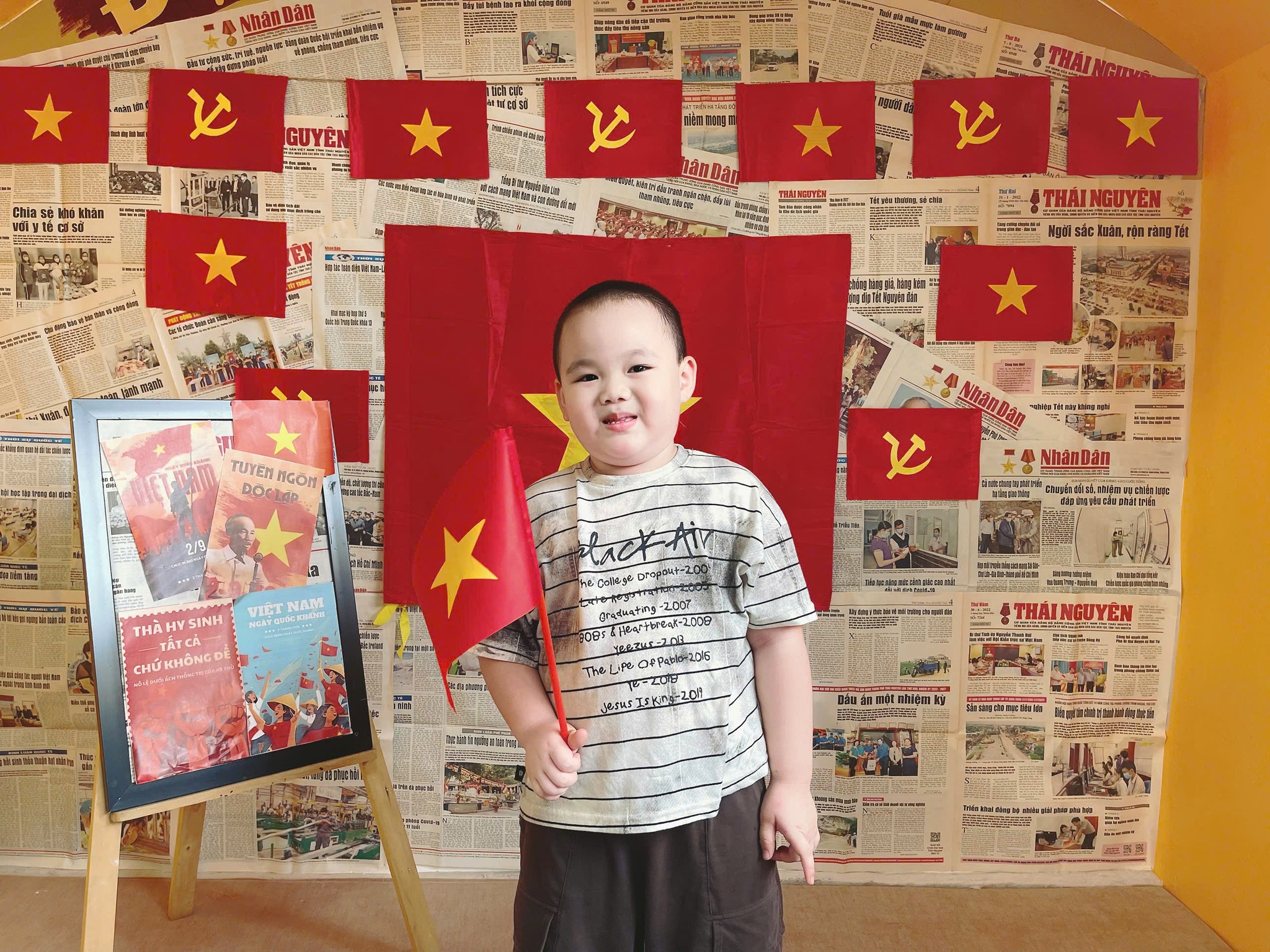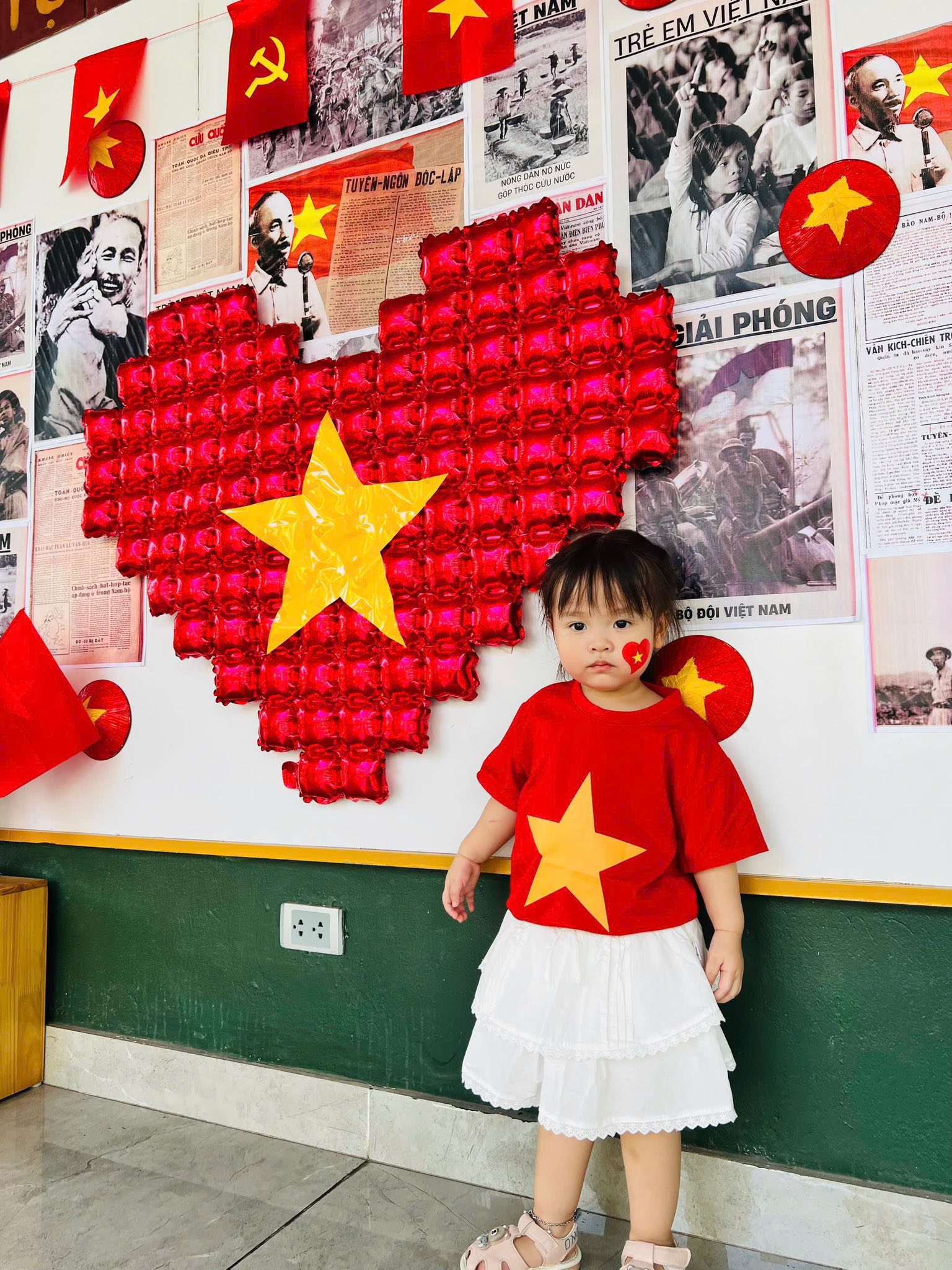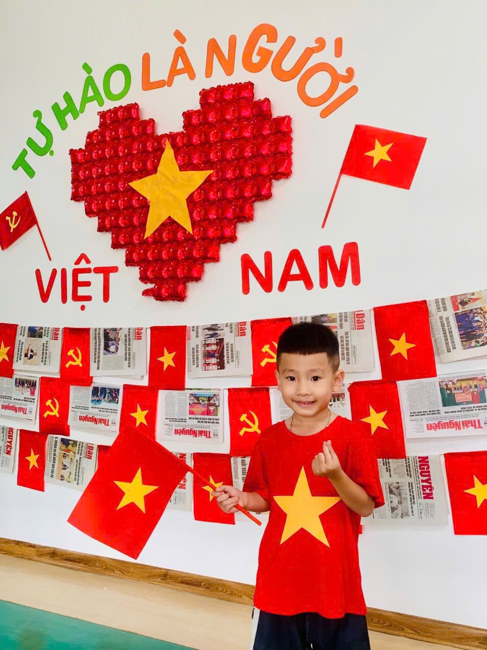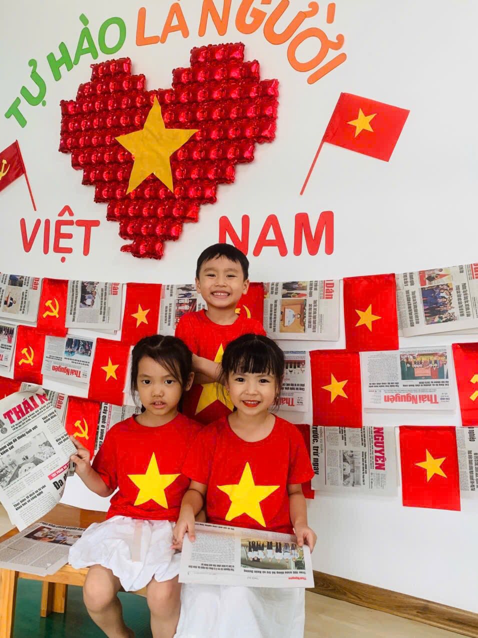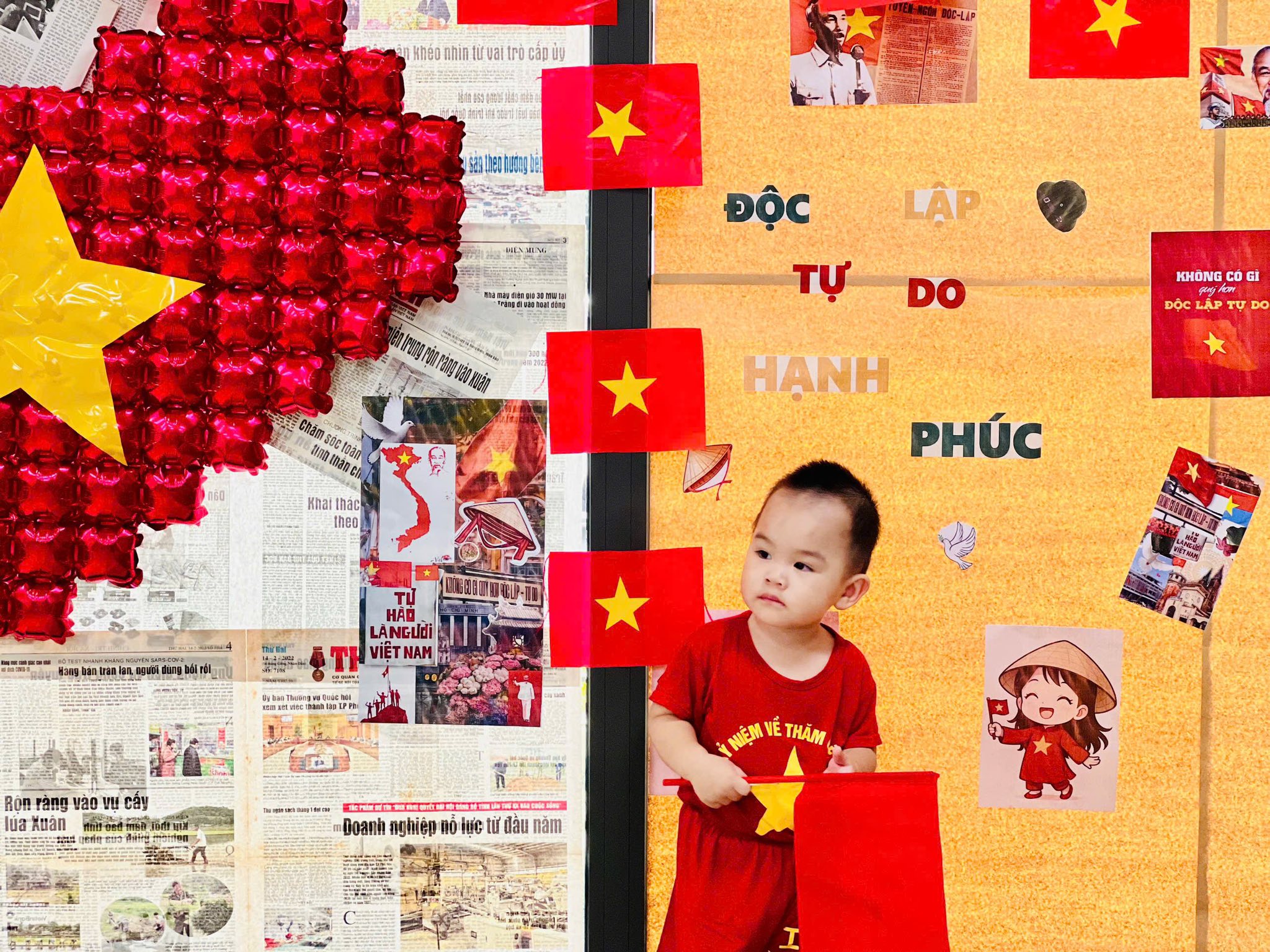 Trong màu áo đỏ sao vàng, các bạn nhỏ hào hứng tạo dáng bên không gian rực rỡ cờ hoa, pano, khẩu hiệu được các cô giáo chuẩn bị đầy tâm huyết. Hoạt động chụp ảnh tuy giản dị nhưng mang đến cho các con niềm vui và khơi gợi tình yêu quê hương, lòng tự hào dân tộc.