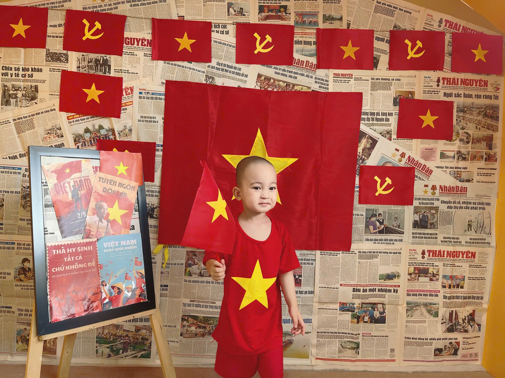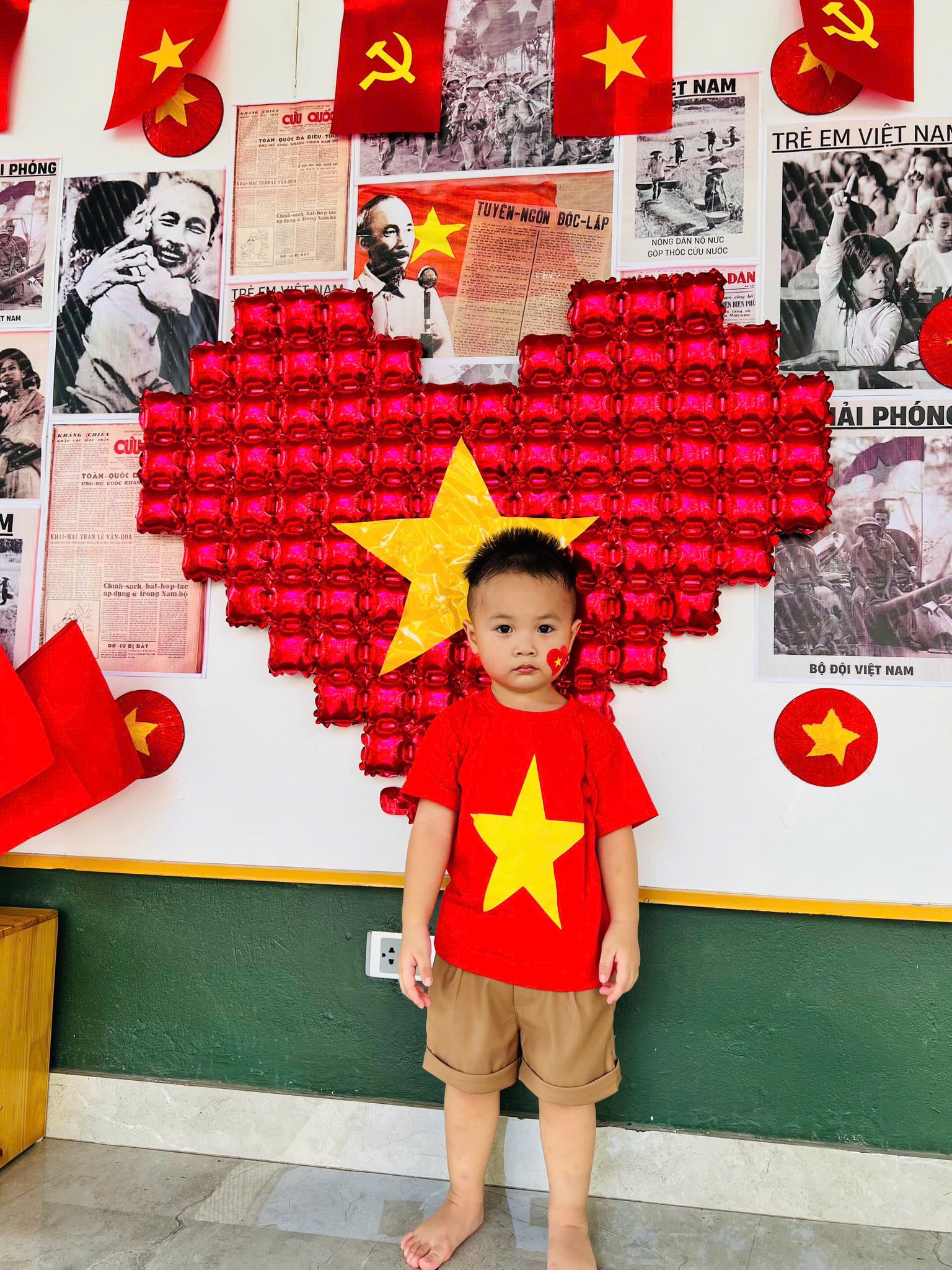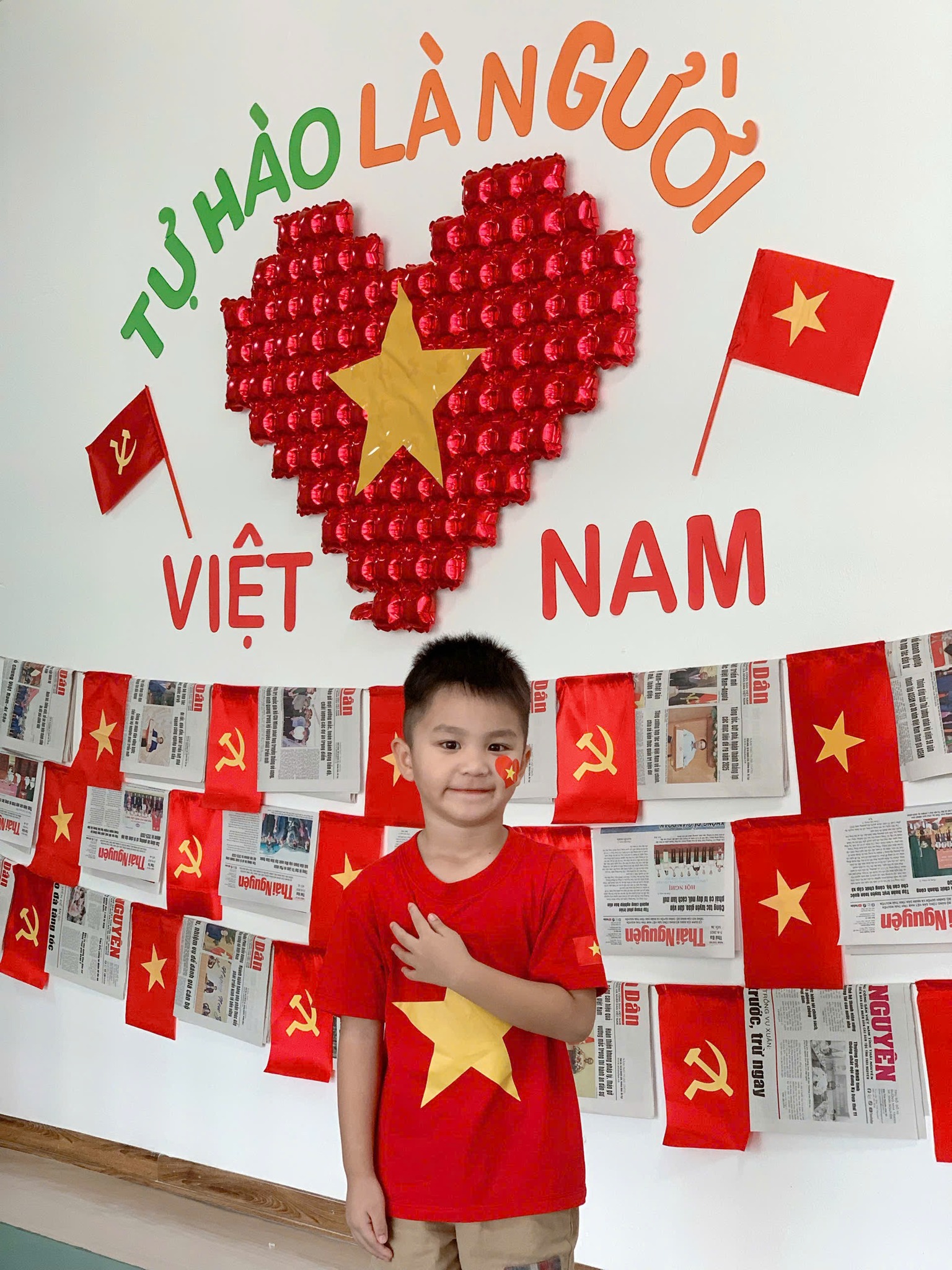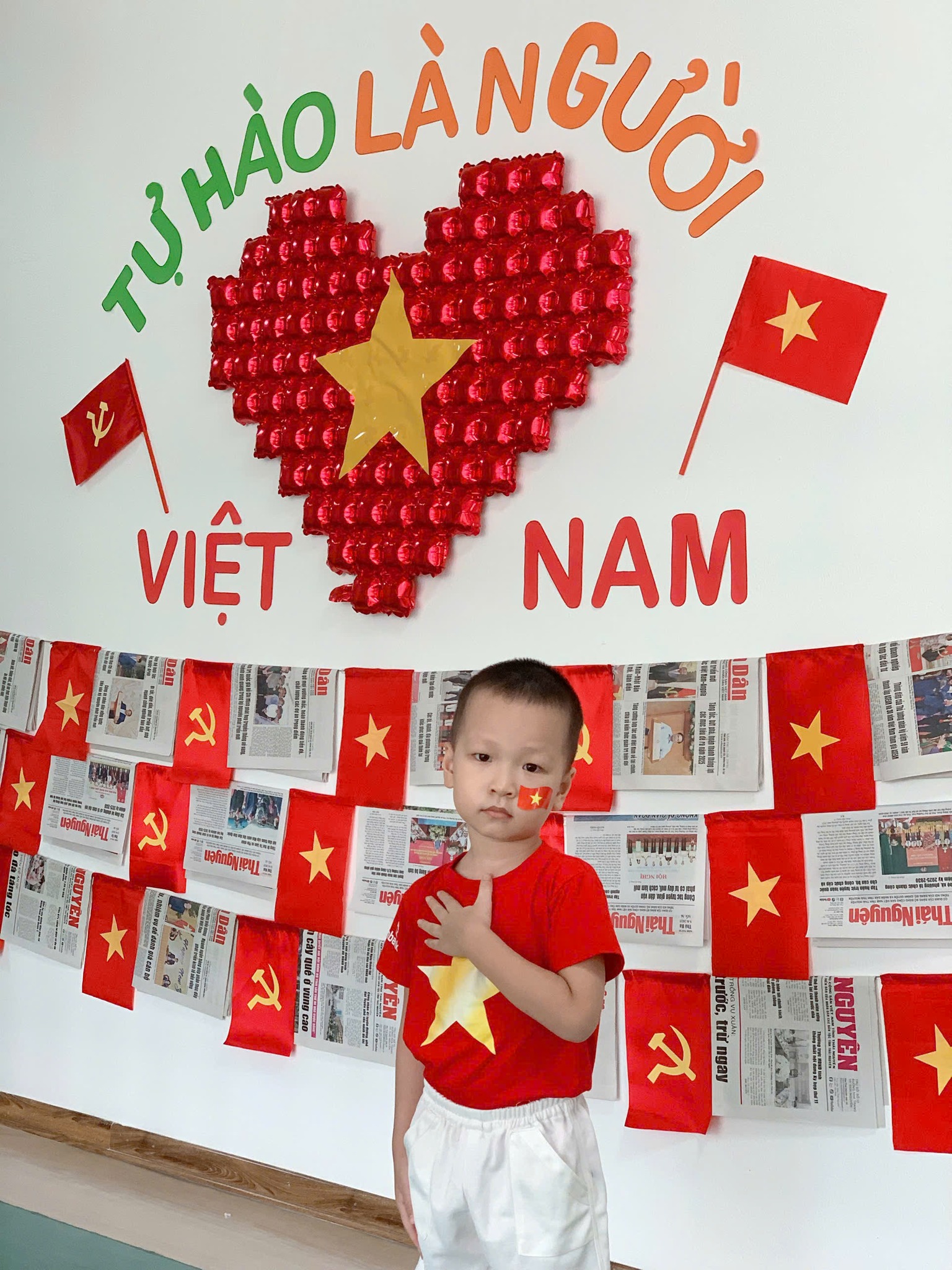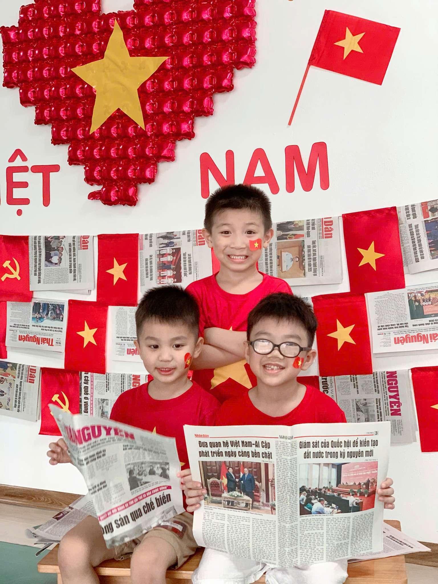 Trong màu áo đỏ sao vàng, các bạn nhỏ hào hứng tạo dáng bên không gian rực rỡ cờ hoa, pano, khẩu hiệu được các cô giáo chuẩn bị đầy tâm huyết. Hoạt động chụp ảnh tuy giản dị nhưng mang đến cho các con niềm vui và khơi gợi tình yêu quê hương, lòng tự hào dân tộc.