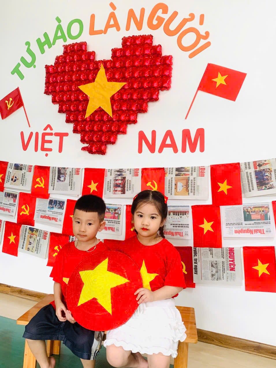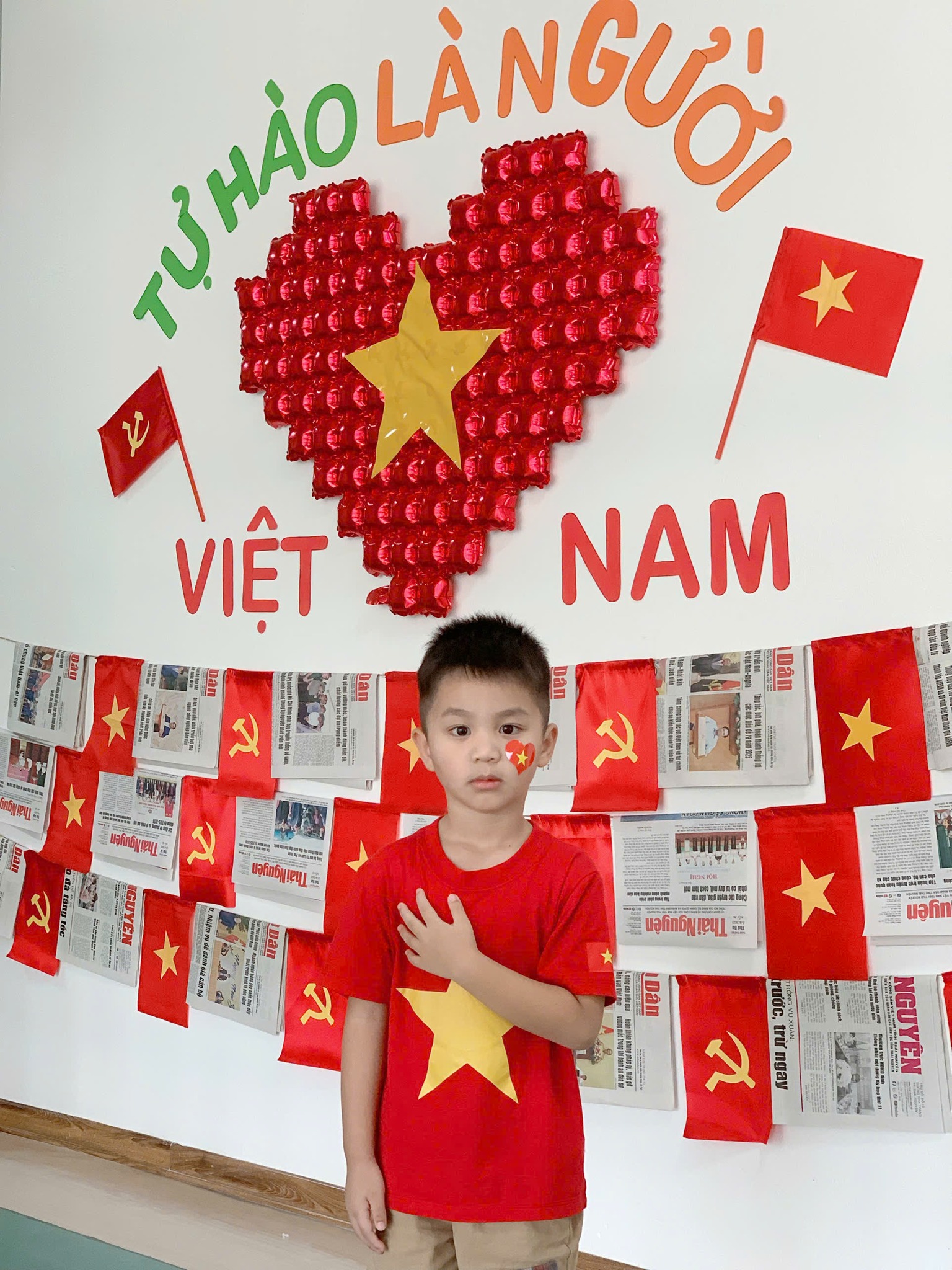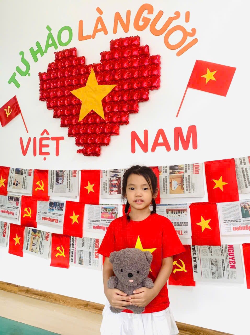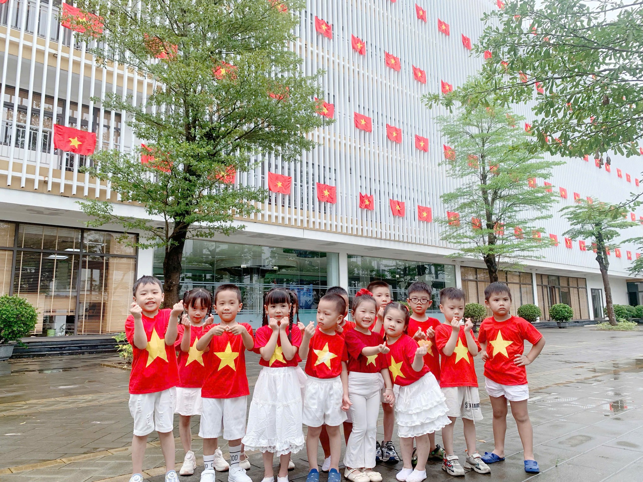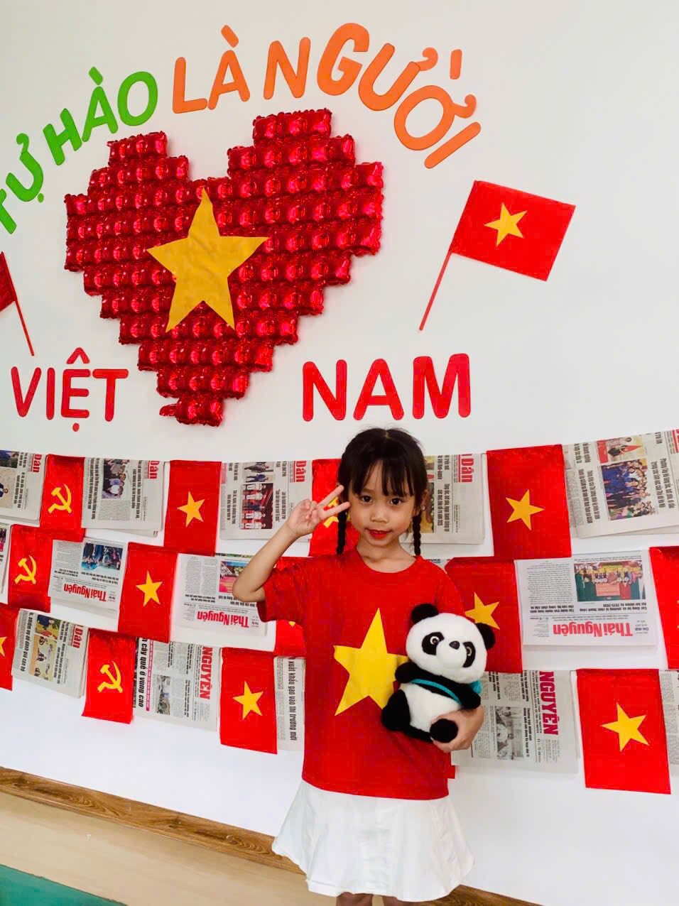Trong màu áo đỏ sao vàng, các bạn nhỏ hào hứng tạo dáng bên không gian rực rỡ cờ hoa, pano, khẩu hiệu được các cô giáo chuẩn bị đầy tâm huyết. Hoạt động chụp ảnh tuy giản dị nhưng mang đến cho các con niềm vui và khơi gợi tình yêu quê hương, lòng tự hào dân tộc.