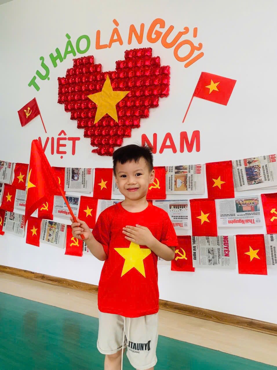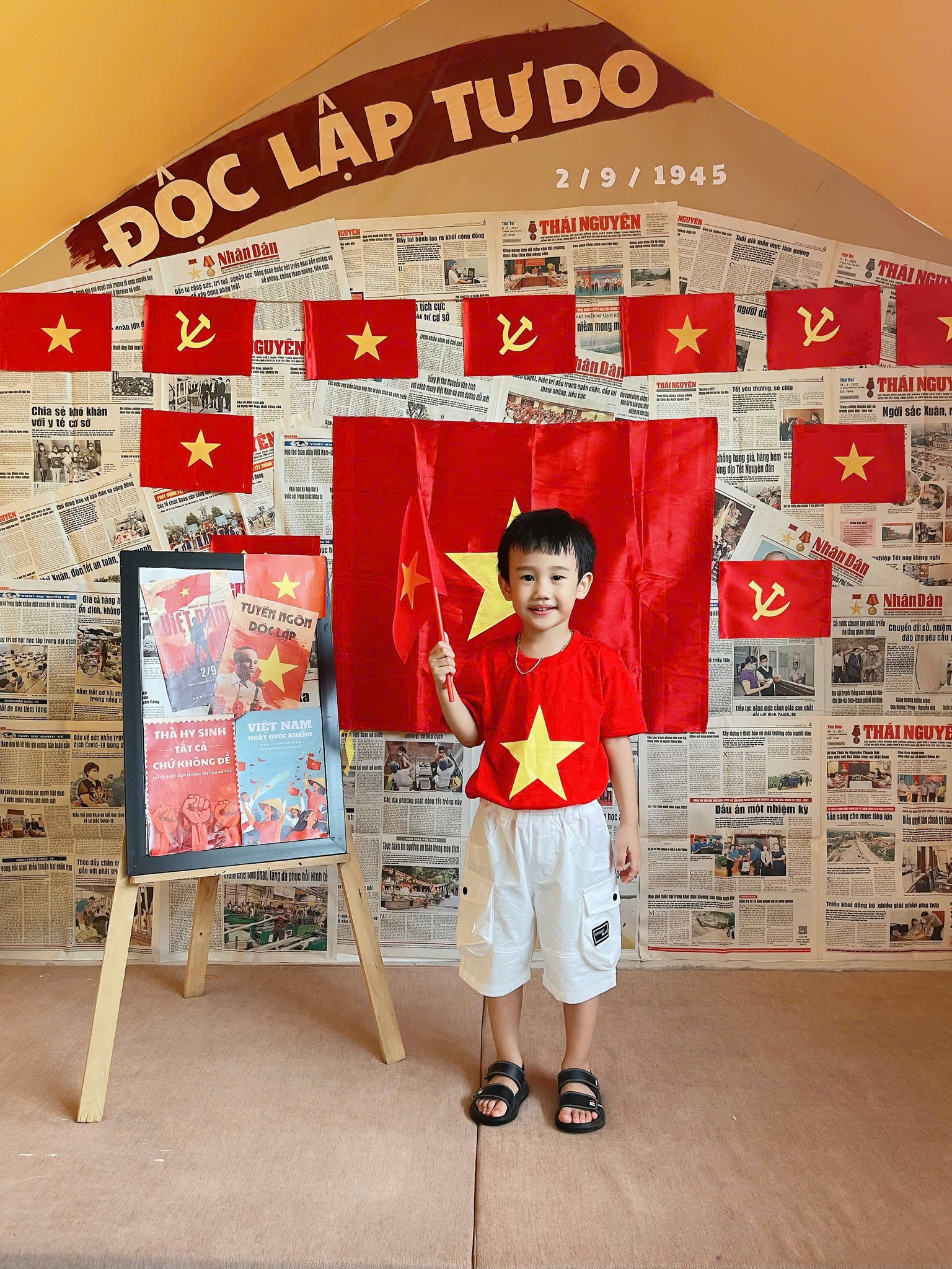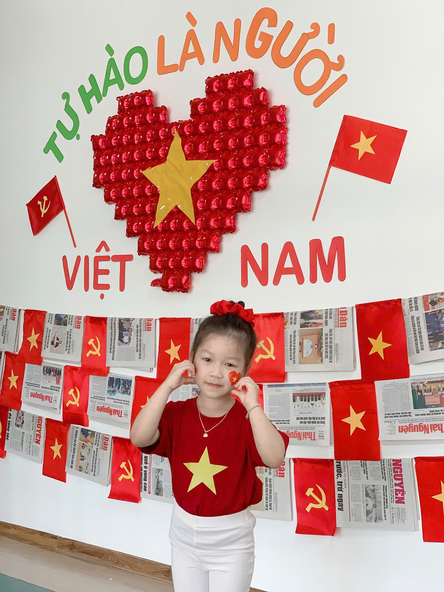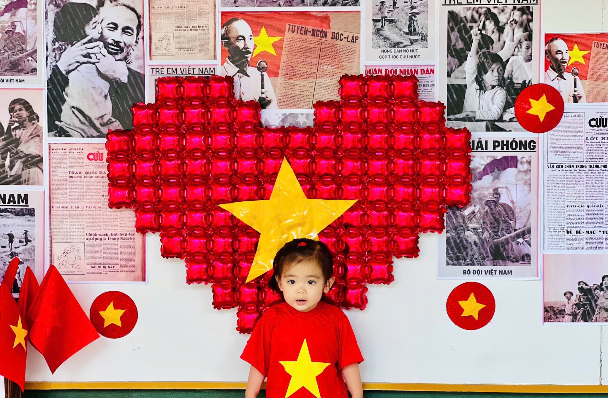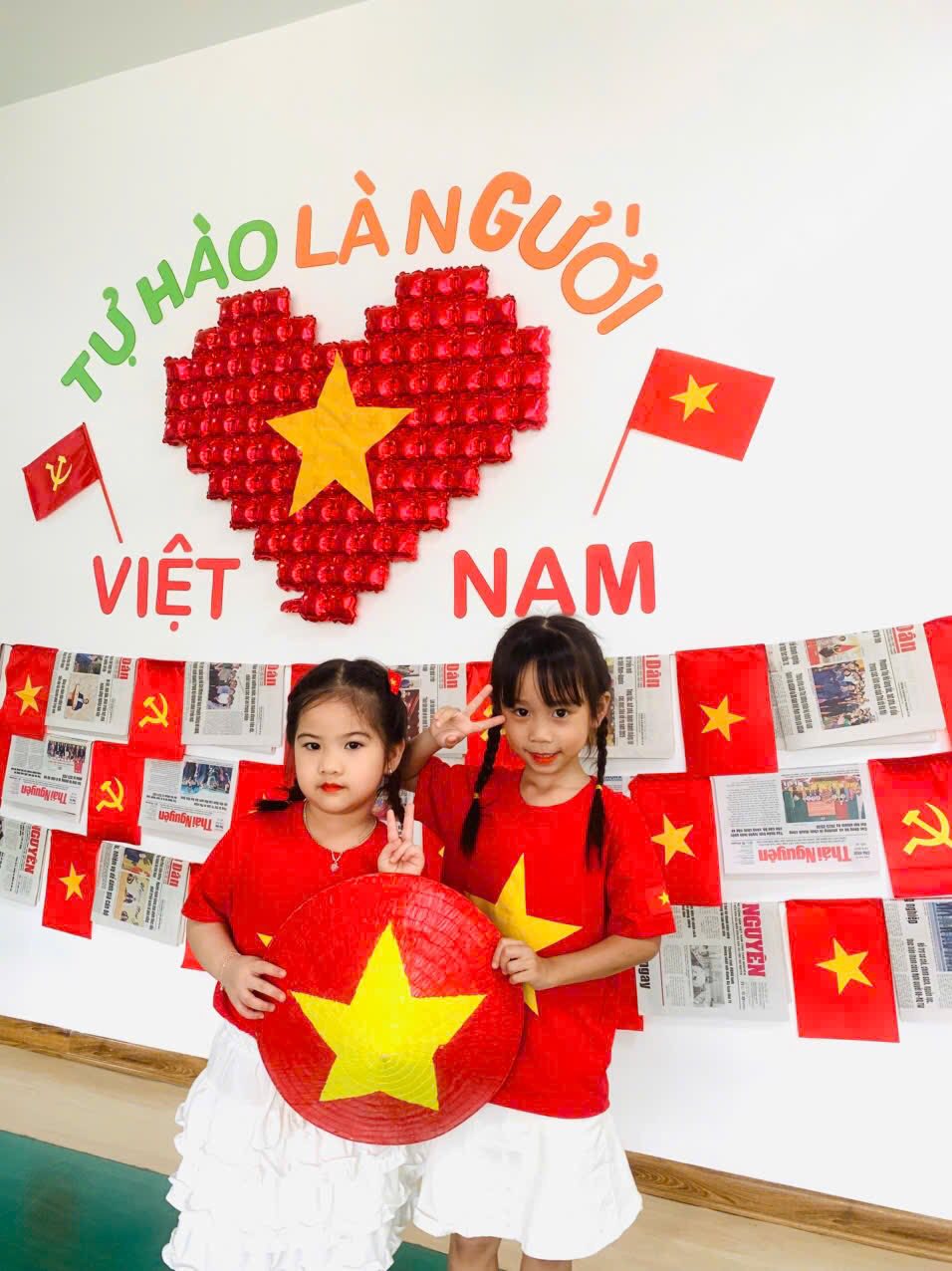 Trong màu áo đỏ sao vàng, các bạn nhỏ hào hứng tạo dáng bên không gian rực rỡ cờ hoa, pano, khẩu hiệu được các cô giáo chuẩn bị đầy tâm huyết. Hoạt động chụp ảnh tuy giản dị nhưng mang đến cho các con niềm vui và khơi gợi tình yêu quê hương, lòng tự hào dân tộc.