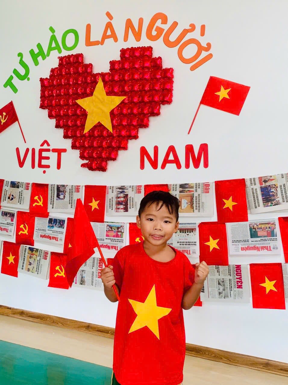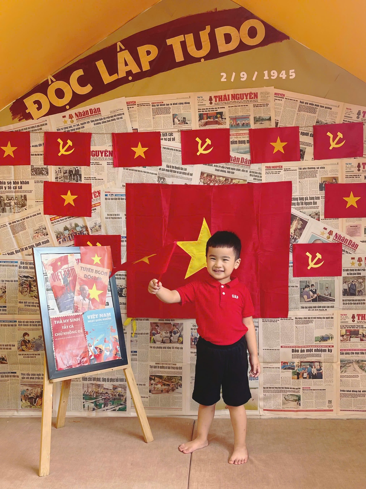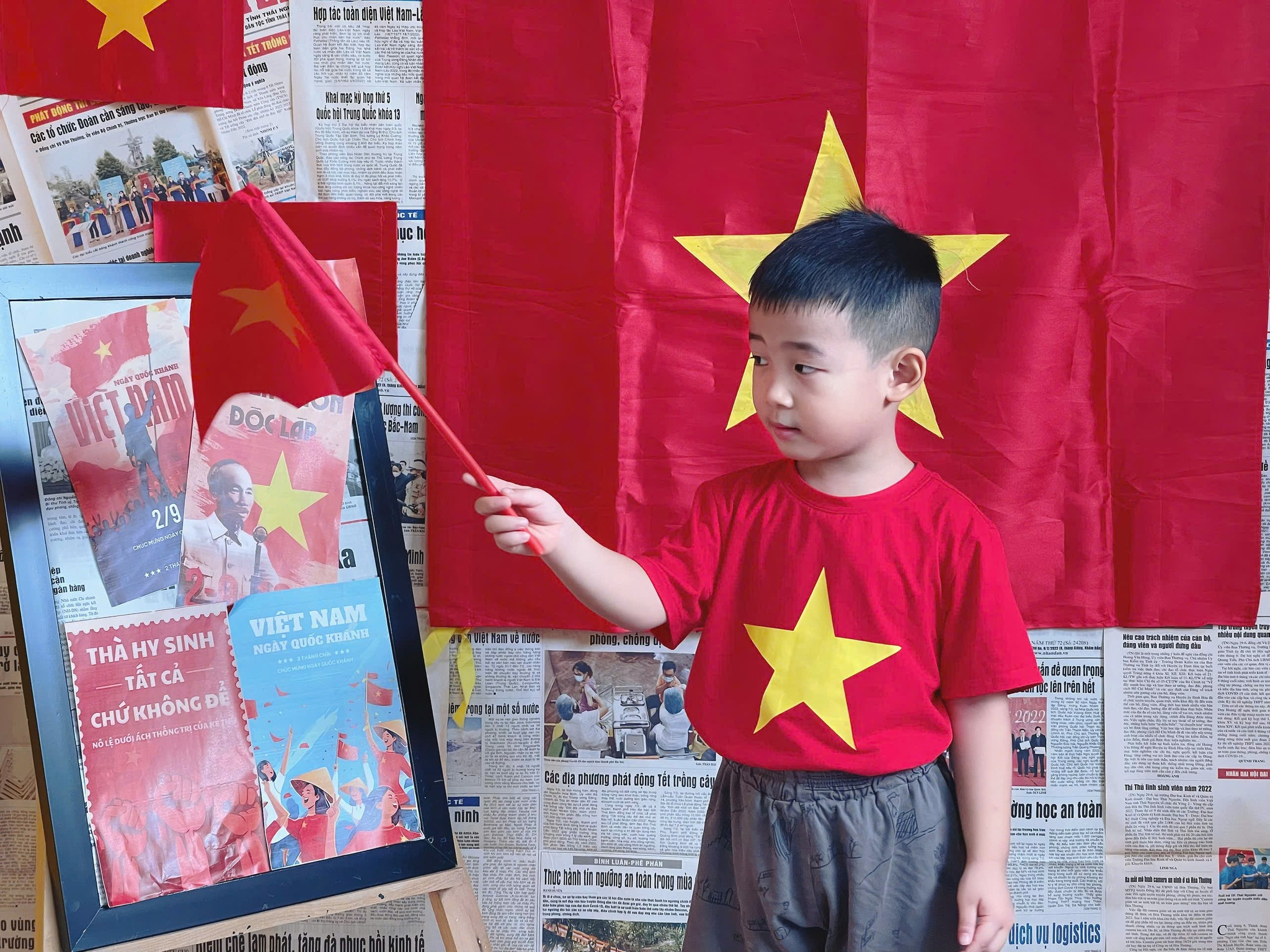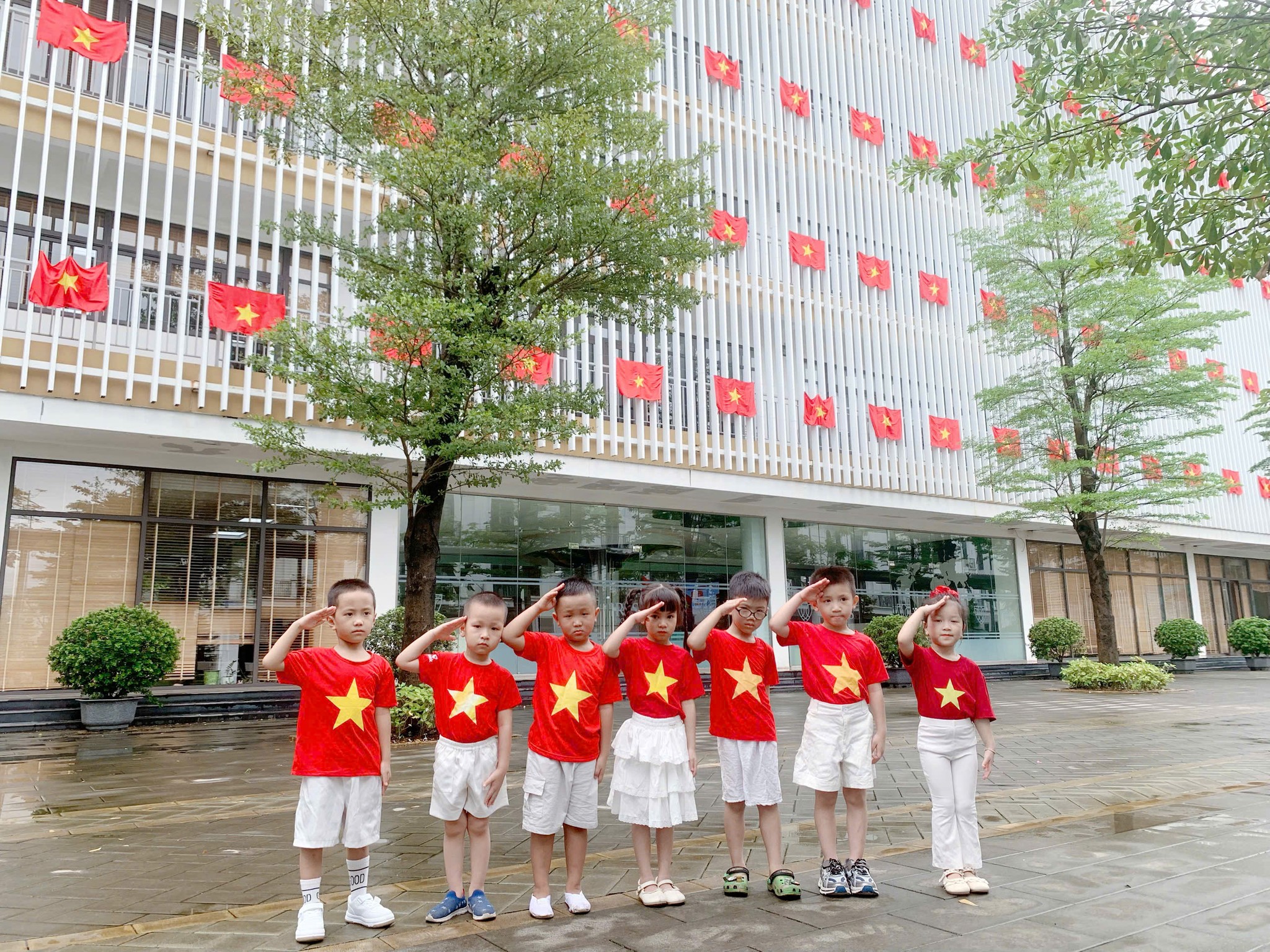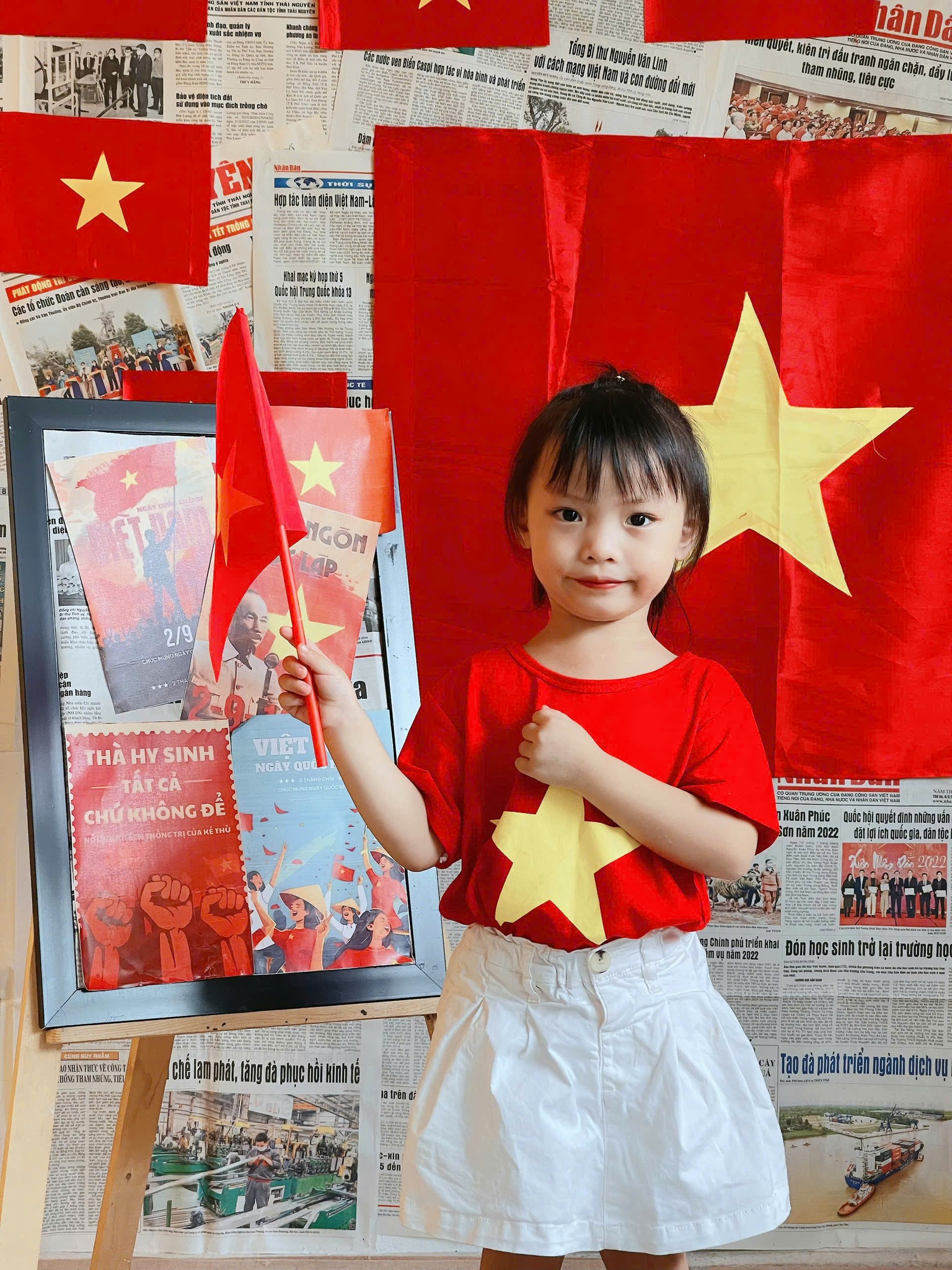 Trong màu áo đỏ sao vàng, các bạn nhỏ hào hứng tạo dáng bên không gian rực rỡ cờ hoa, pano, khẩu hiệu được các cô giáo chuẩn bị đầy tâm huyết. Hoạt động chụp ảnh tuy giản dị nhưng mang đến cho các con niềm vui và khơi gợi tình yêu quê hương, lòng tự hào dân tộc.