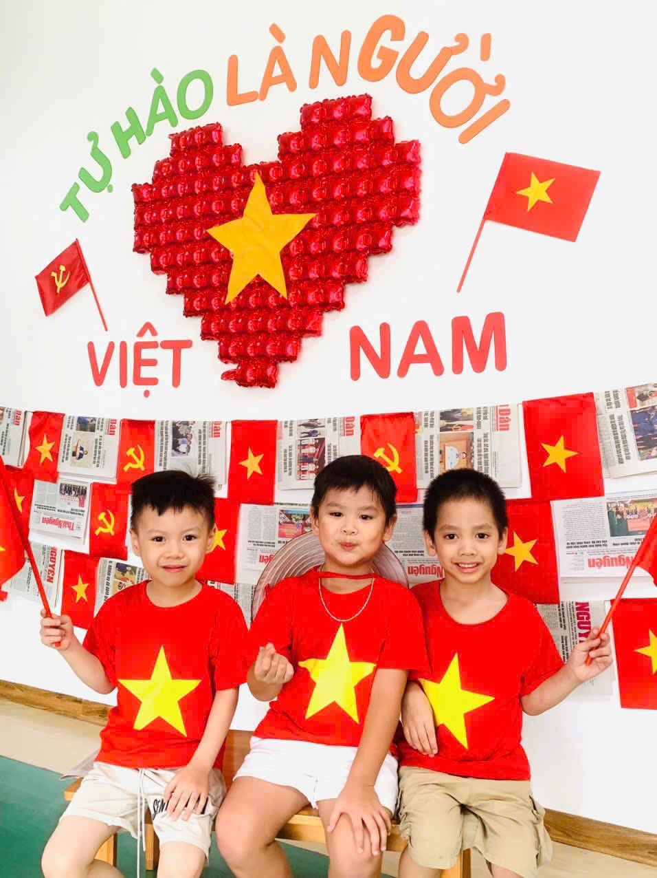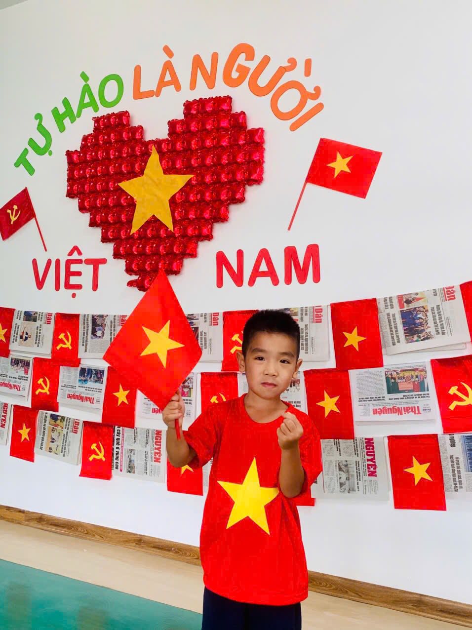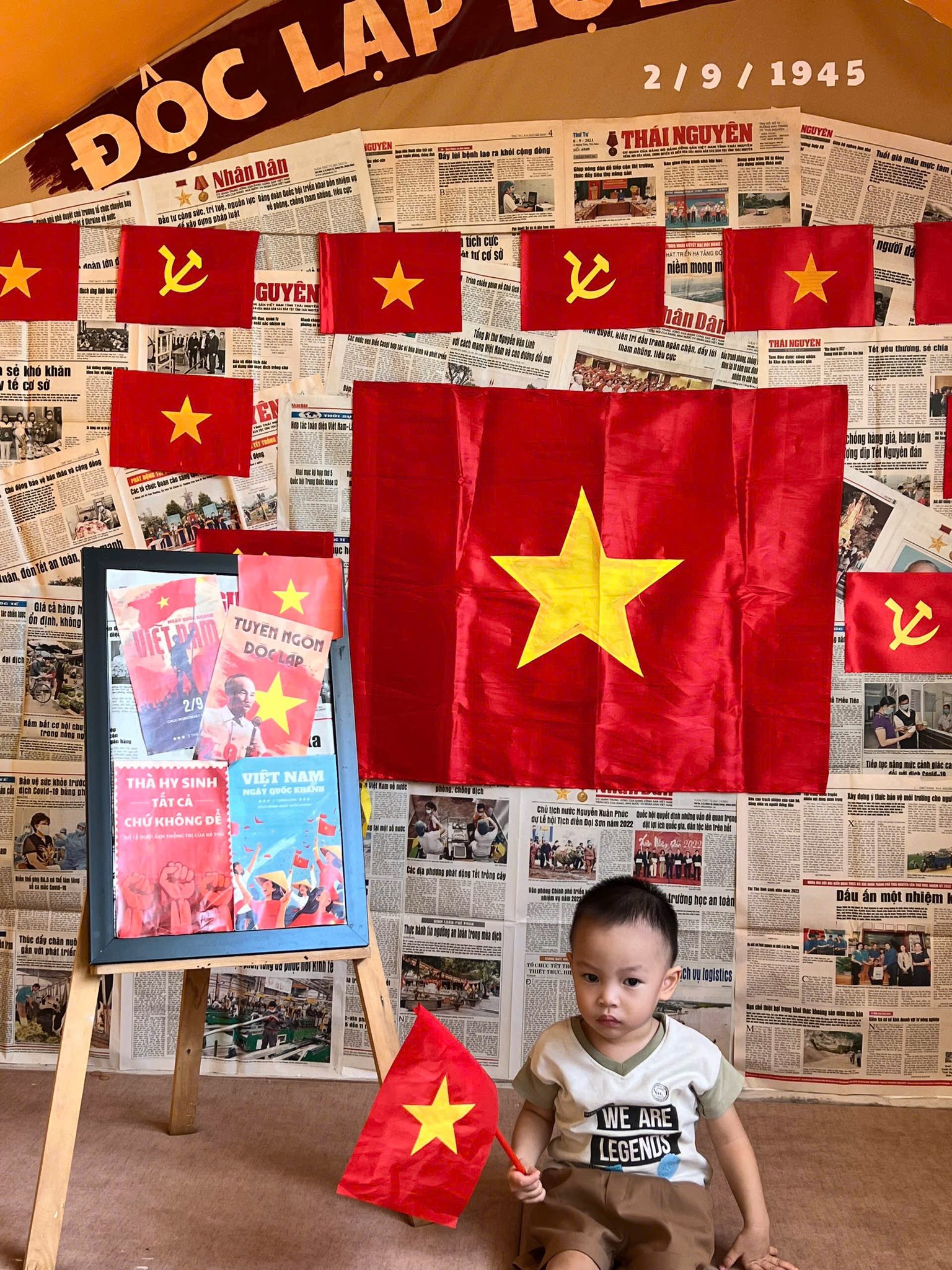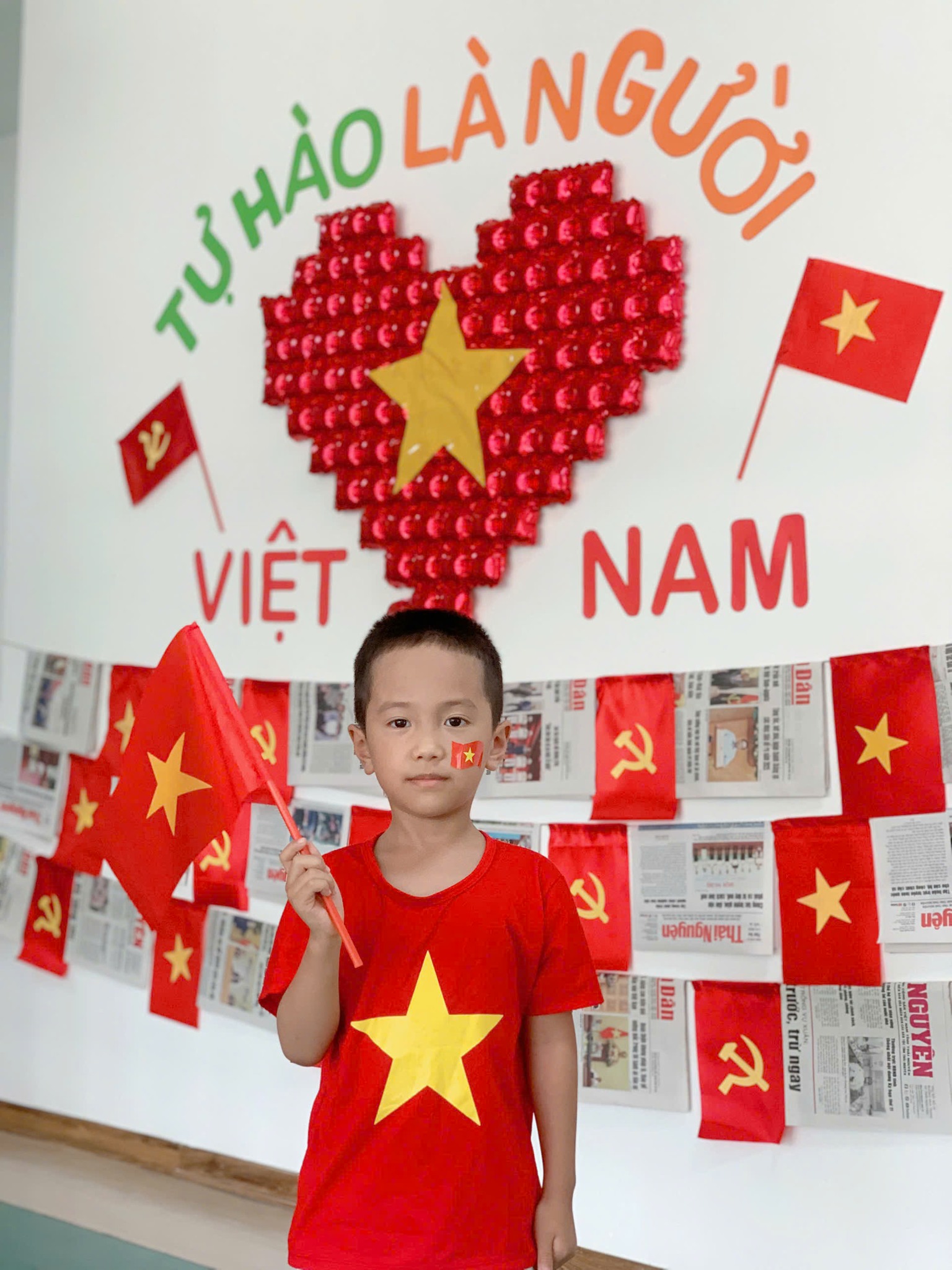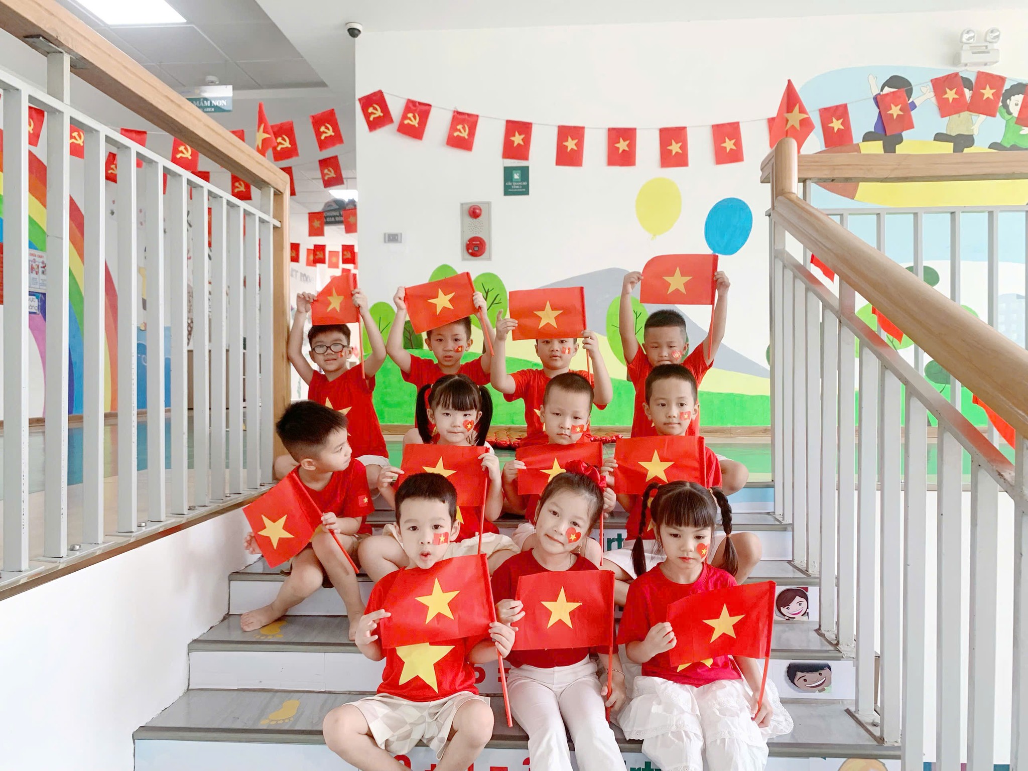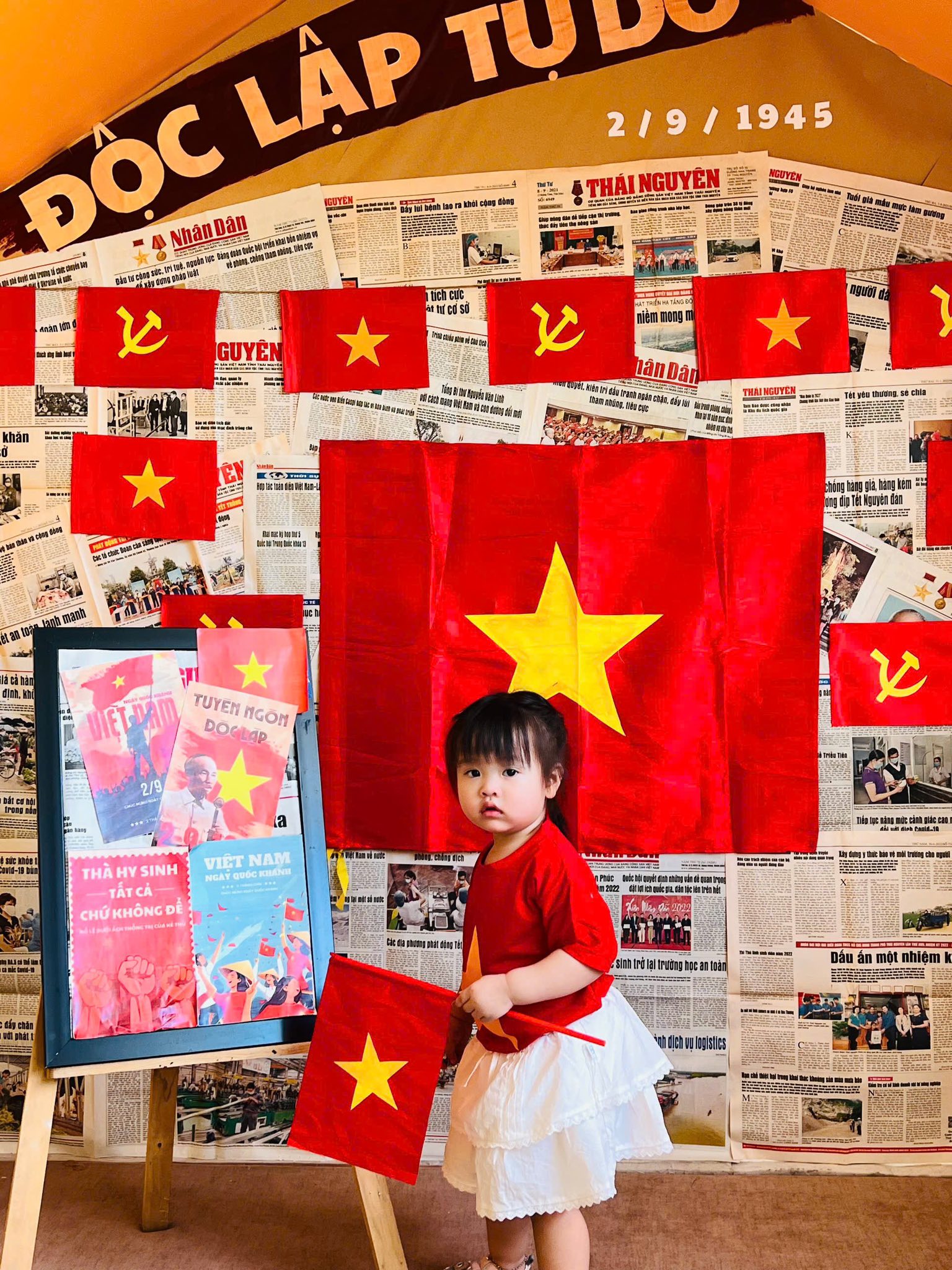 Trong màu áo đỏ sao vàng, các bạn nhỏ hào hứng tạo dáng bên không gian rực rỡ cờ hoa, pano, khẩu hiệu được các cô giáo chuẩn bị đầy tâm huyết. Hoạt động chụp ảnh tuy giản dị nhưng mang đến cho các con niềm vui và khơi gợi tình yêu quê hương, lòng tự hào dân tộc.