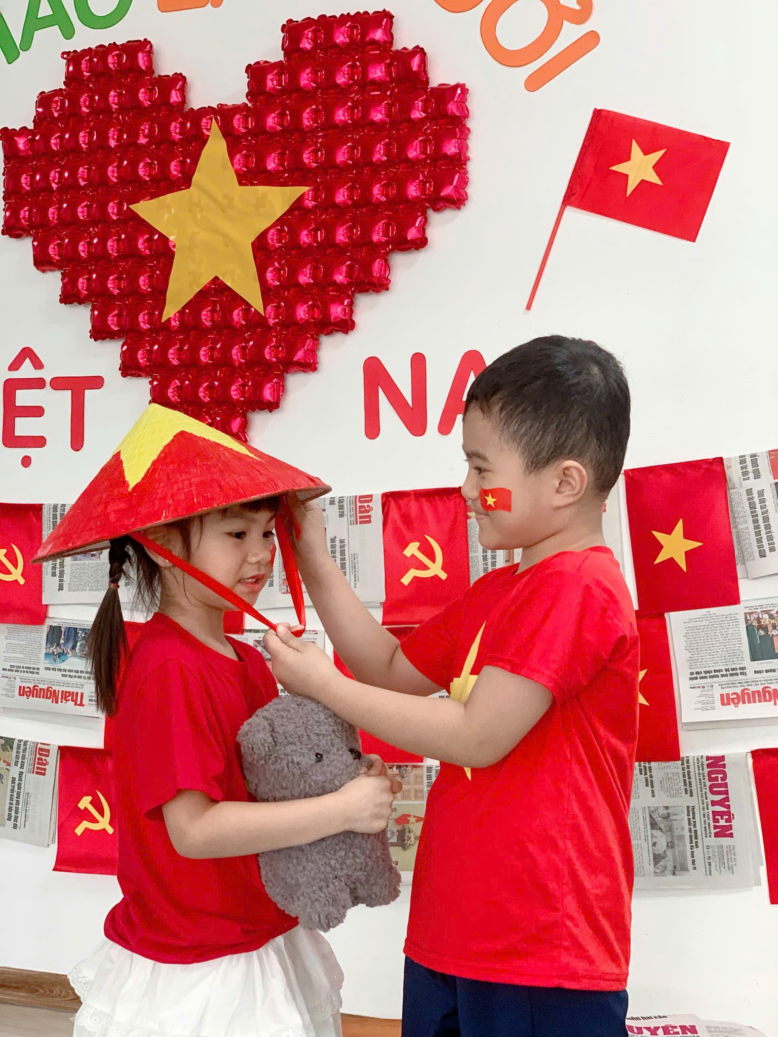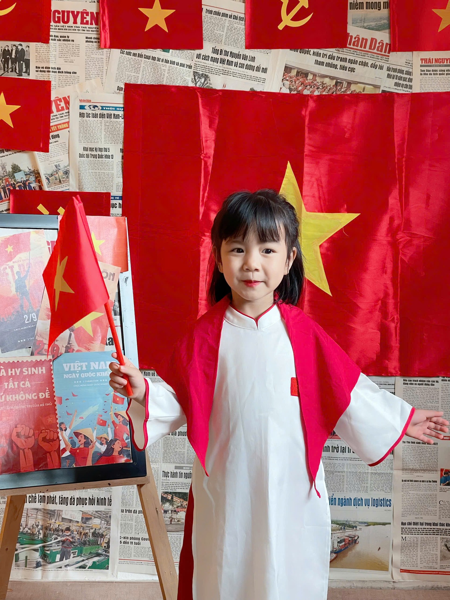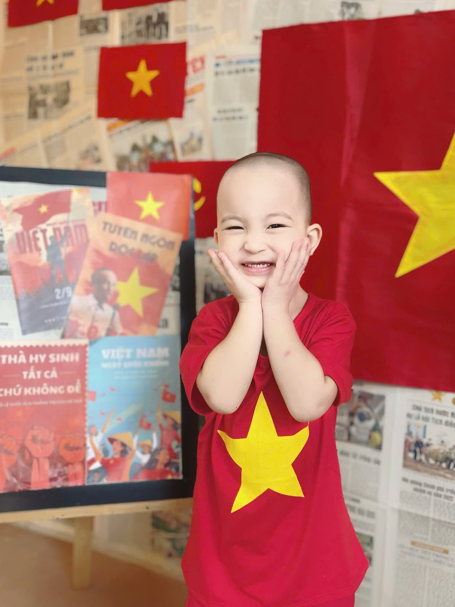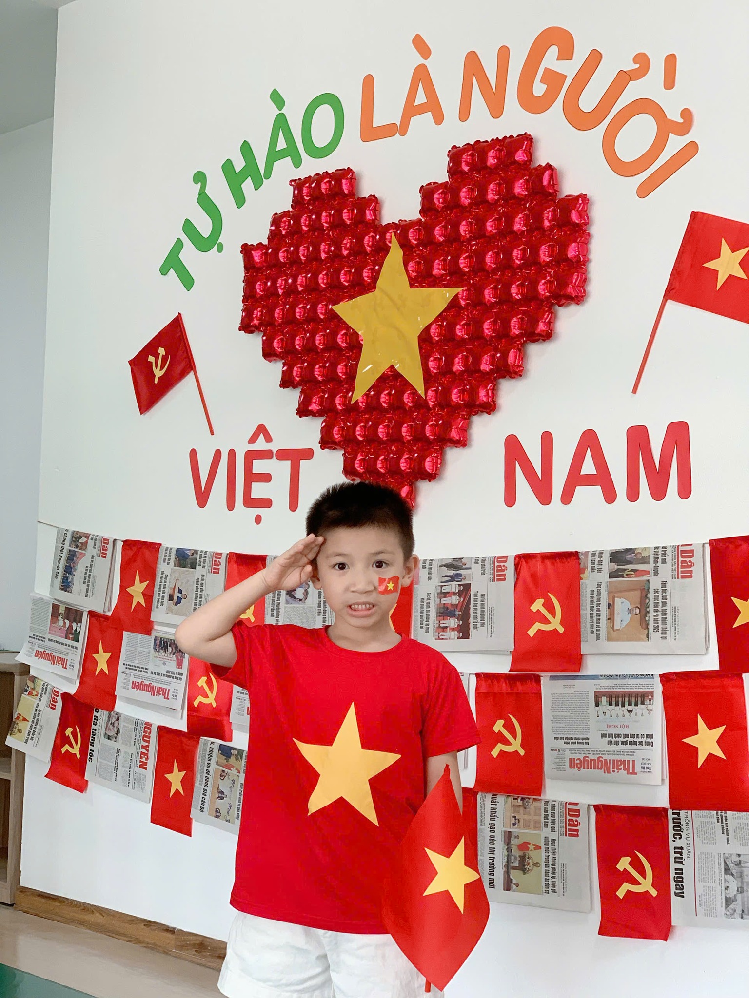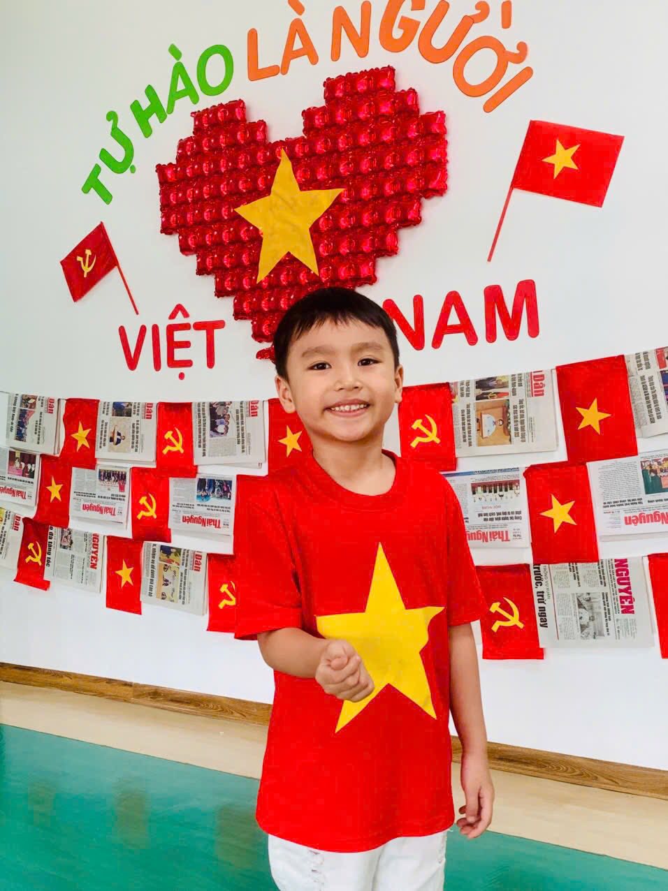 Trong màu áo đỏ sao vàng, các bạn nhỏ hào hứng tạo dáng bên không gian rực rỡ cờ hoa, pano, khẩu hiệu được các cô giáo chuẩn bị đầy tâm huyết. Hoạt động chụp ảnh tuy giản dị nhưng mang đến cho các con niềm vui và khơi gợi tình yêu quê hương, lòng tự hào dân tộc.