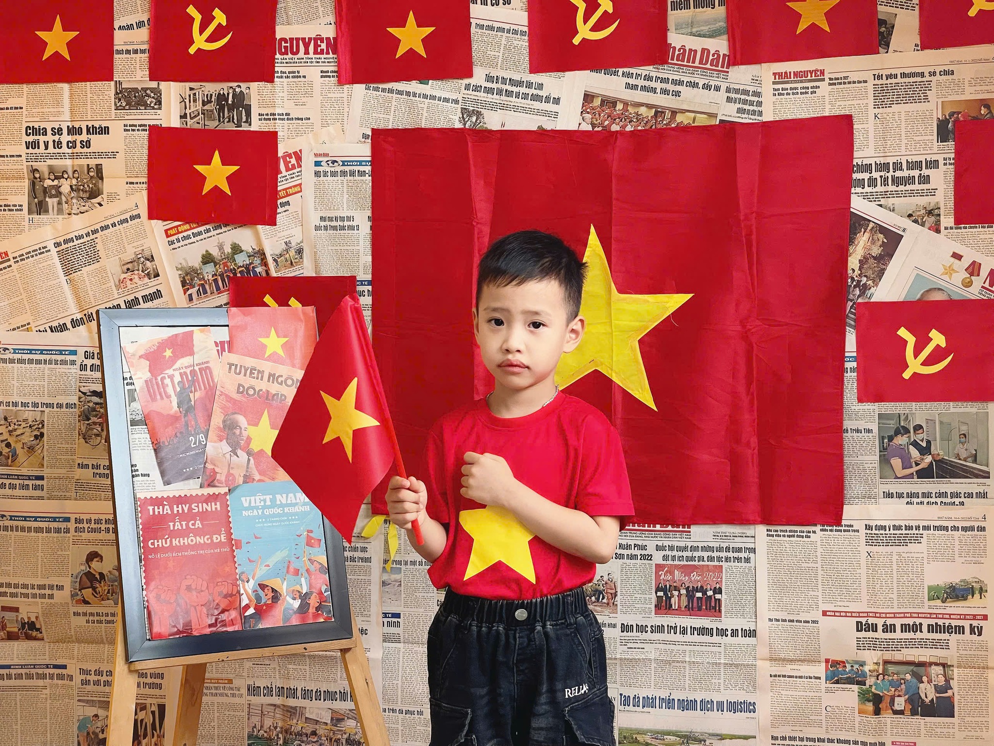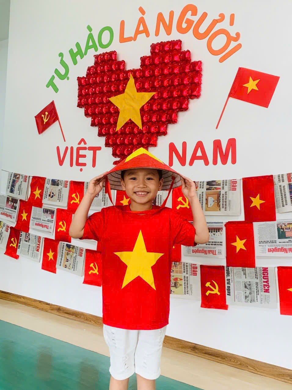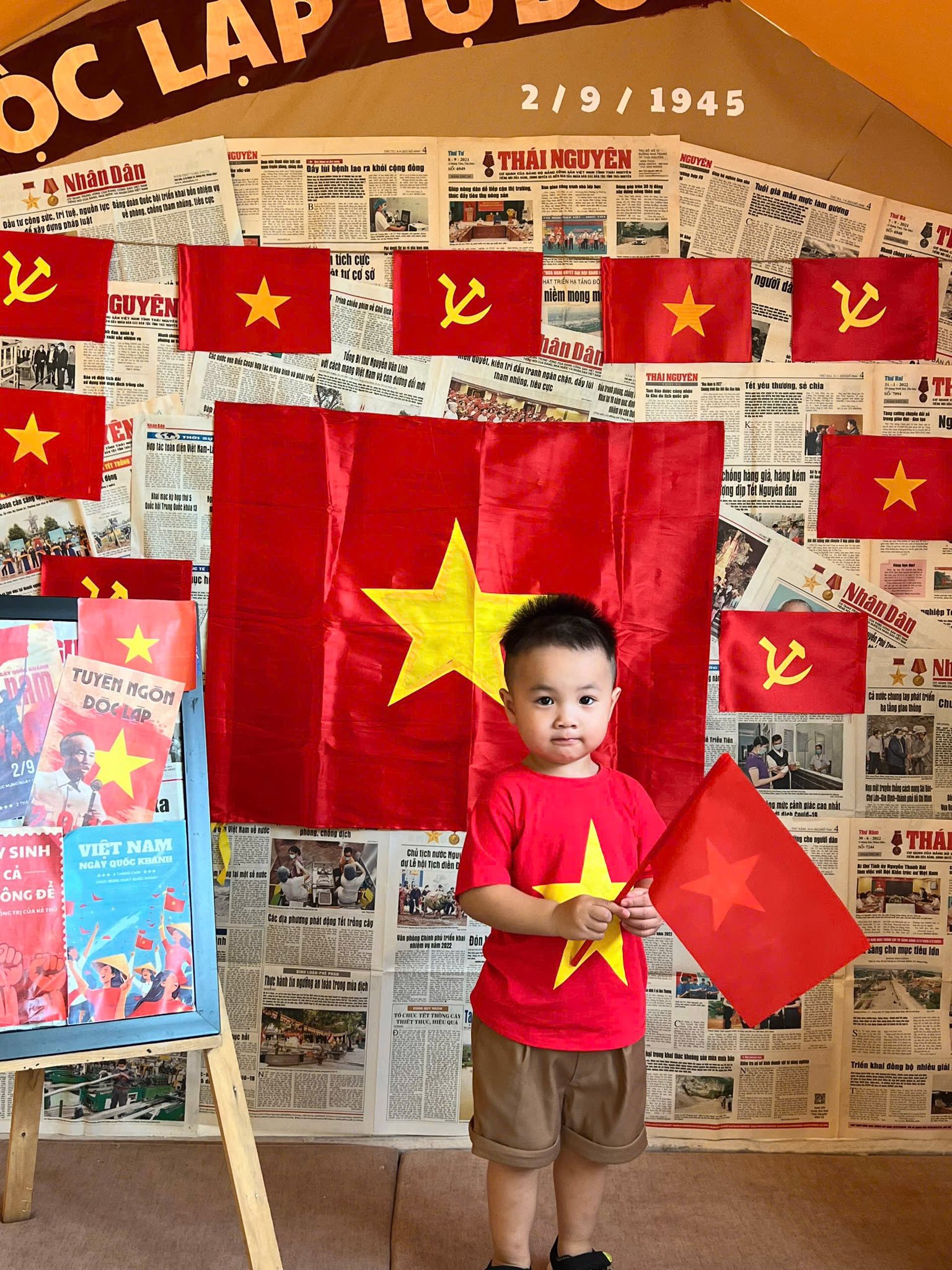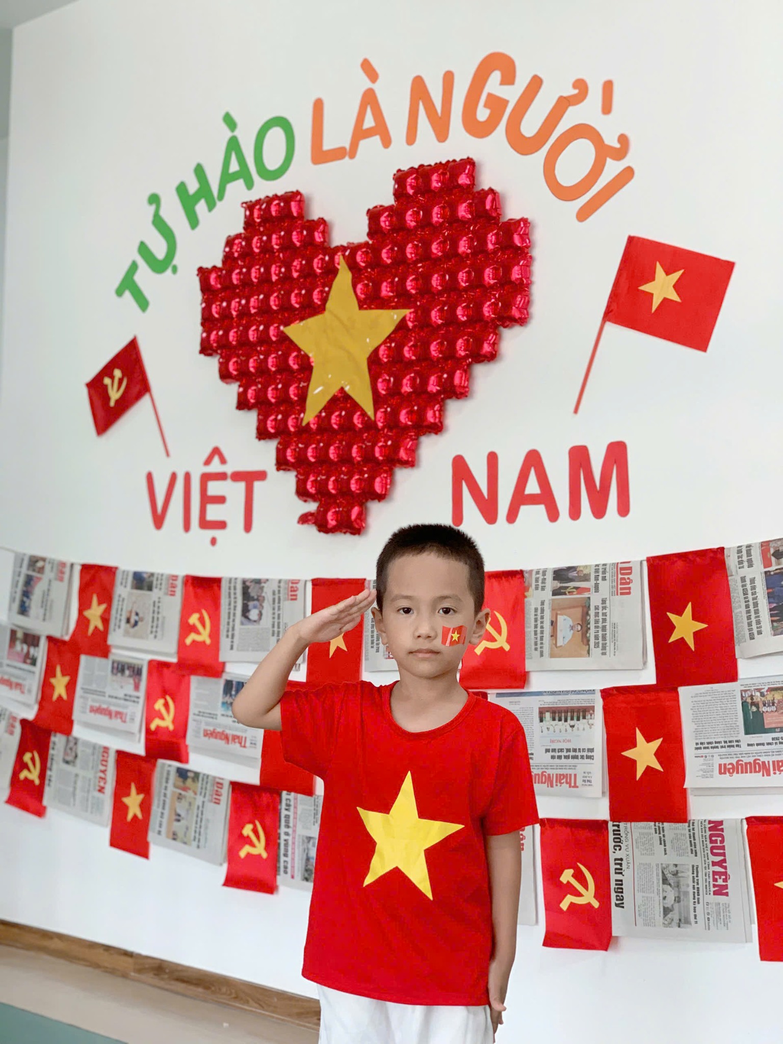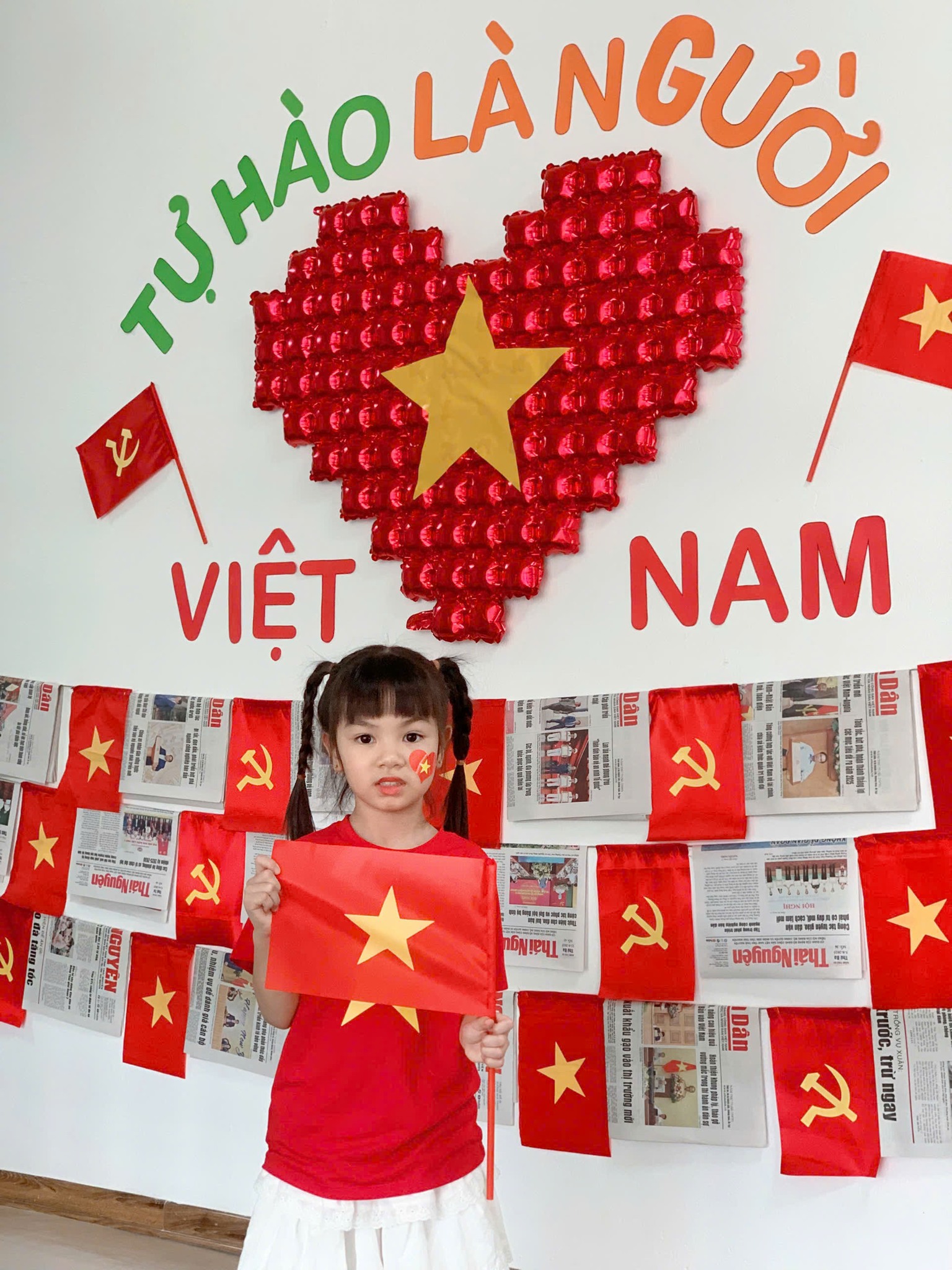 Trong màu áo đỏ sao vàng, các bạn nhỏ hào hứng tạo dáng bên không gian rực rỡ cờ hoa, pano, khẩu hiệu được các cô giáo chuẩn bị đầy tâm huyết. Hoạt động chụp ảnh tuy giản dị nhưng mang đến cho các con niềm vui và khơi gợi tình yêu quê hương, lòng tự hào dân tộc.