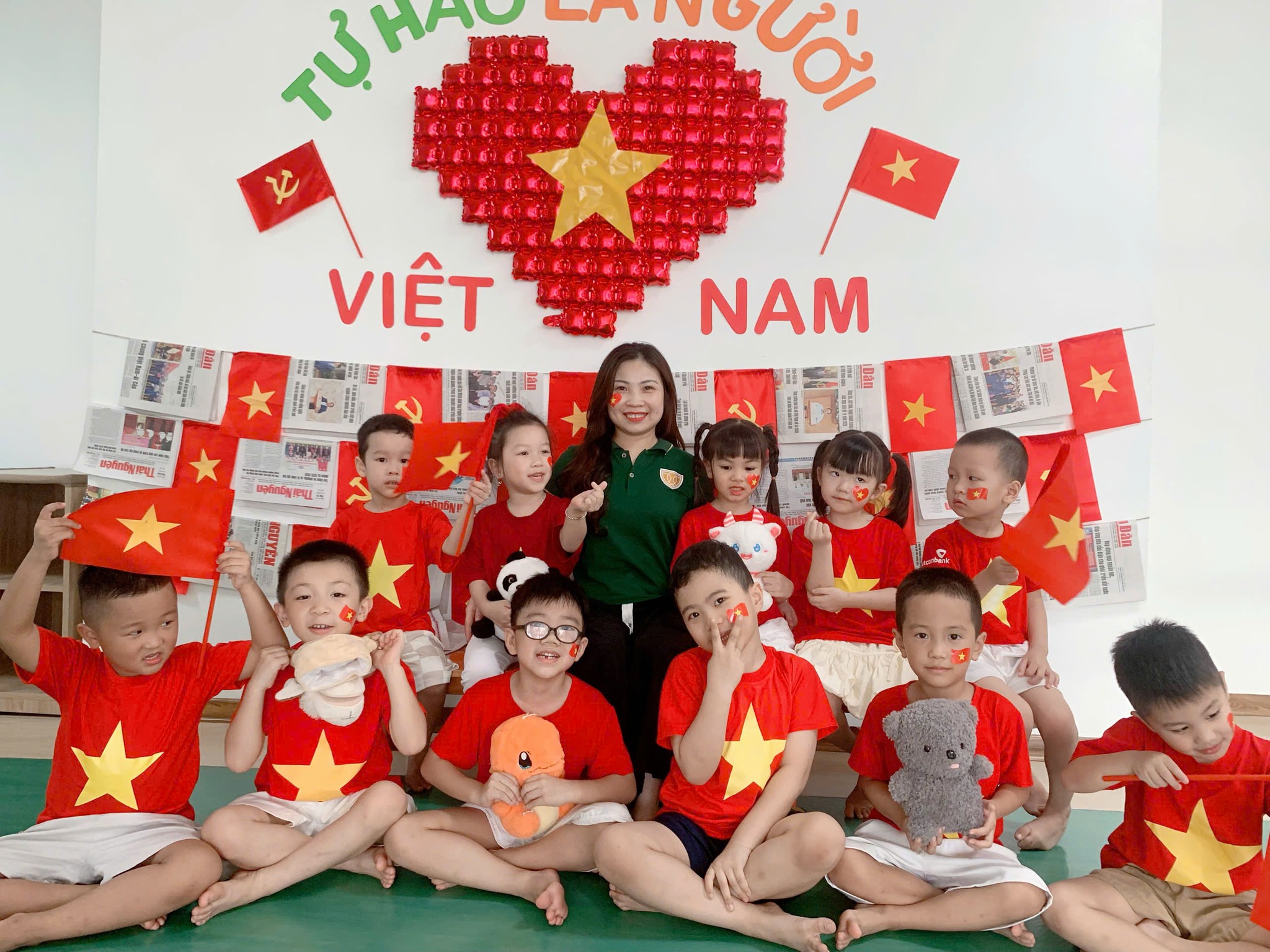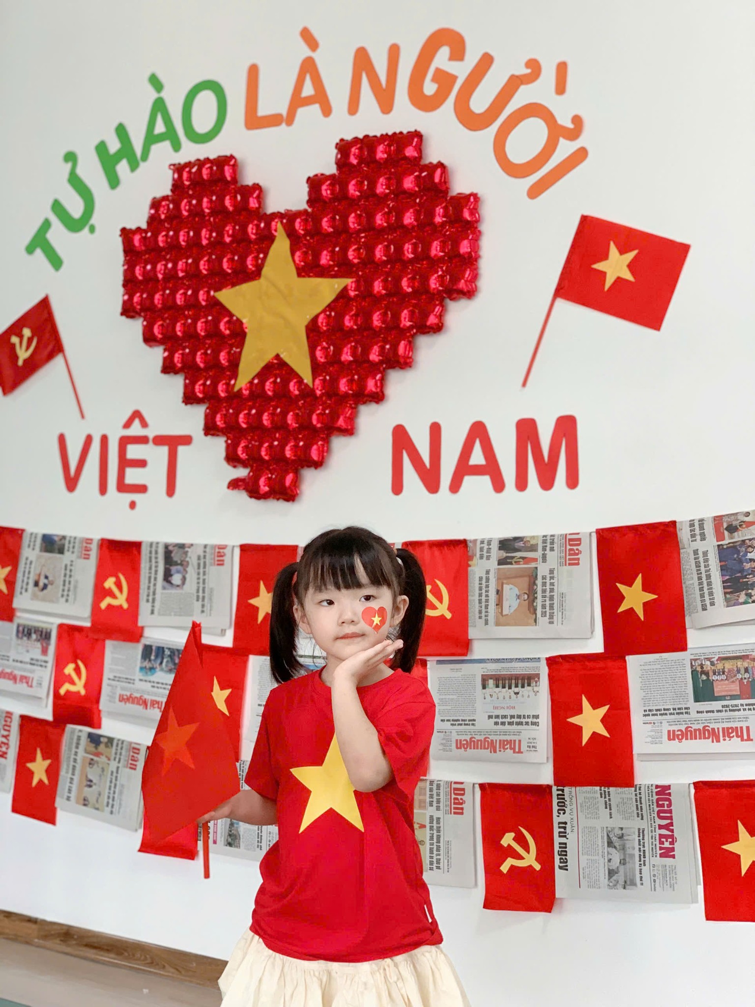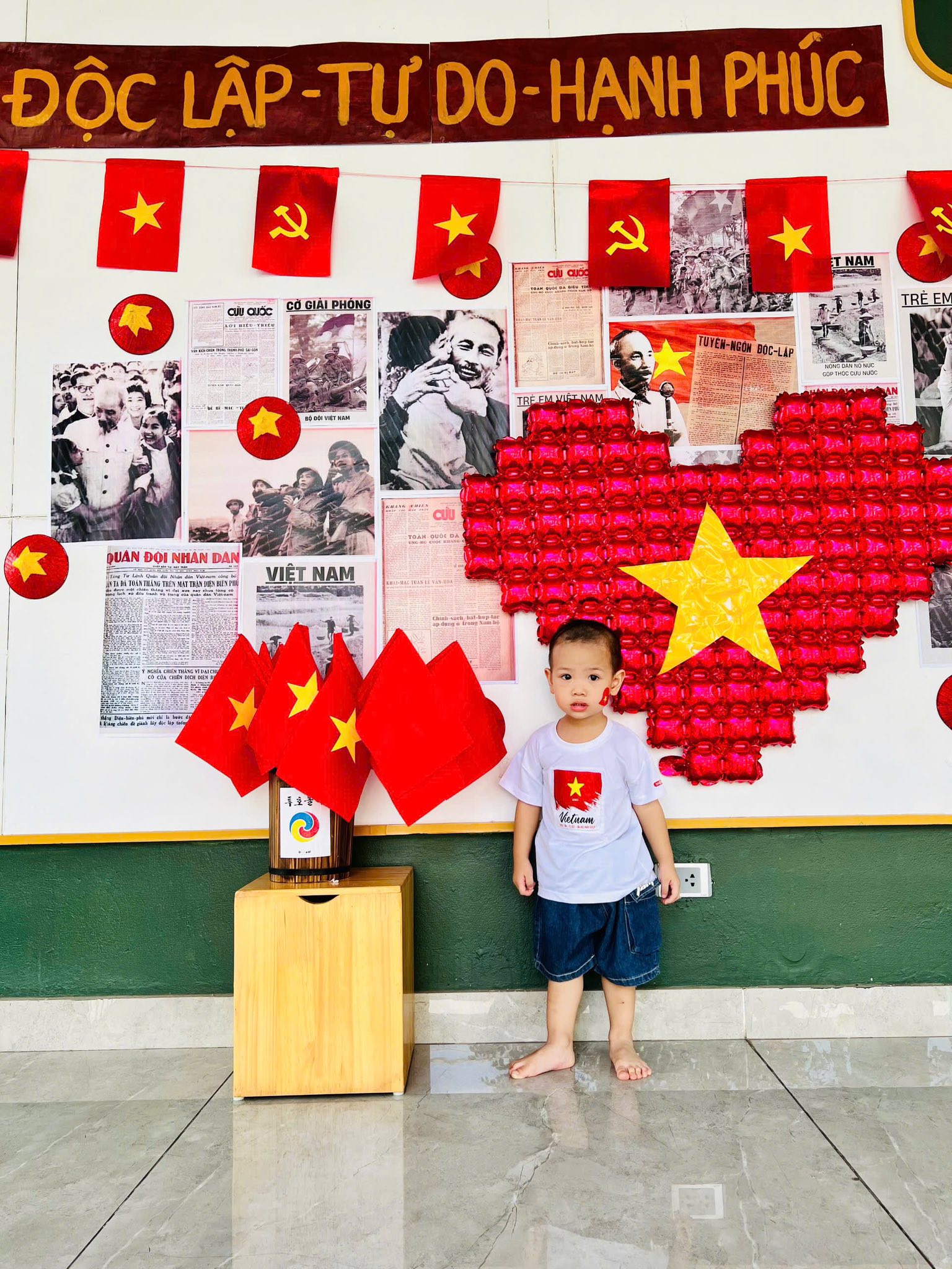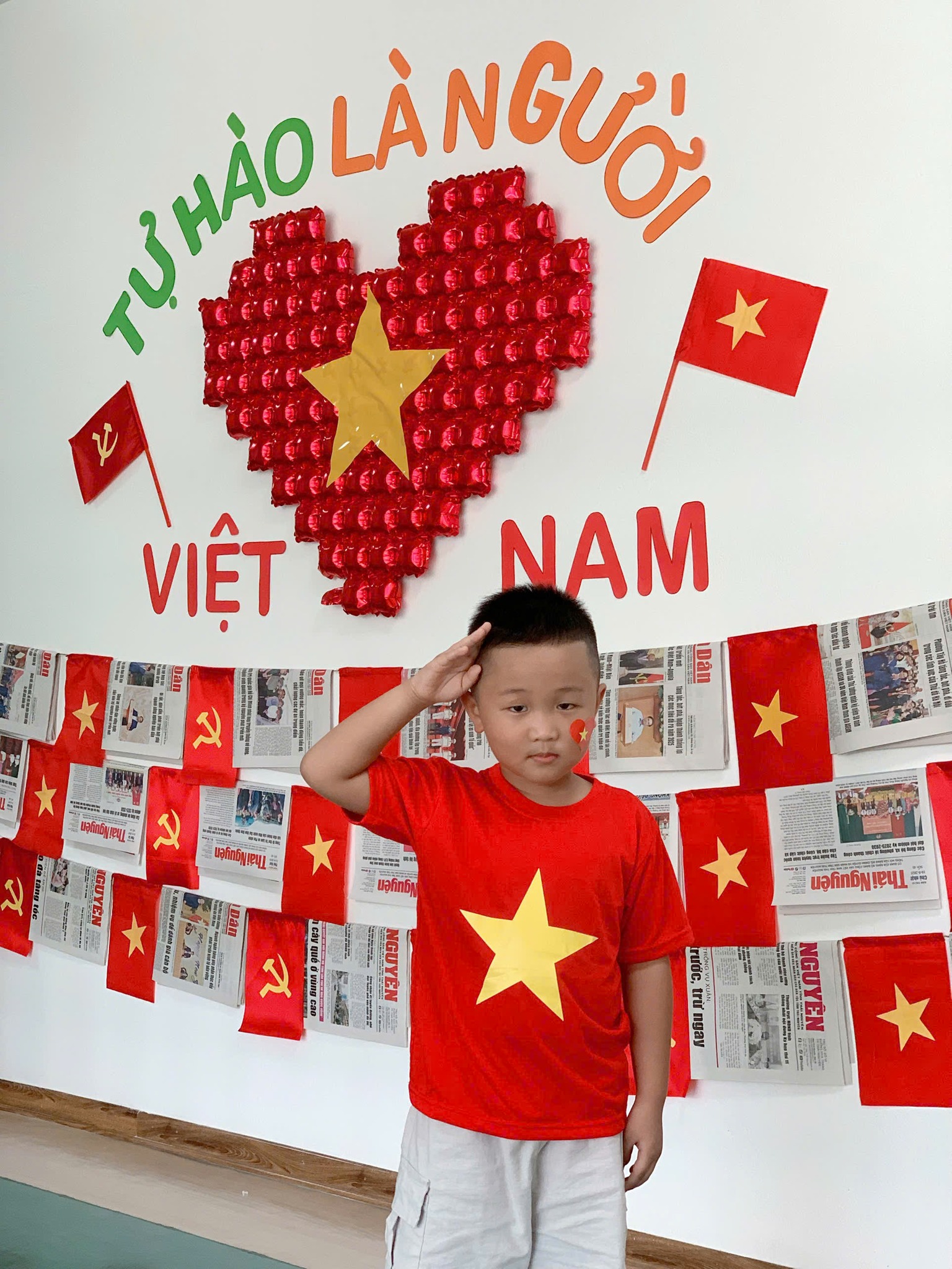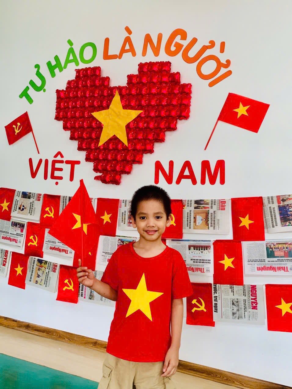 Trong màu áo đỏ sao vàng, các bạn nhỏ hào hứng tạo dáng bên không gian rực rỡ cờ hoa, pano, khẩu hiệu được các cô giáo chuẩn bị đầy tâm huyết. Hoạt động chụp ảnh tuy giản dị nhưng mang đến cho các con niềm vui và khơi gợi tình yêu quê hương, lòng tự hào dân tộc.