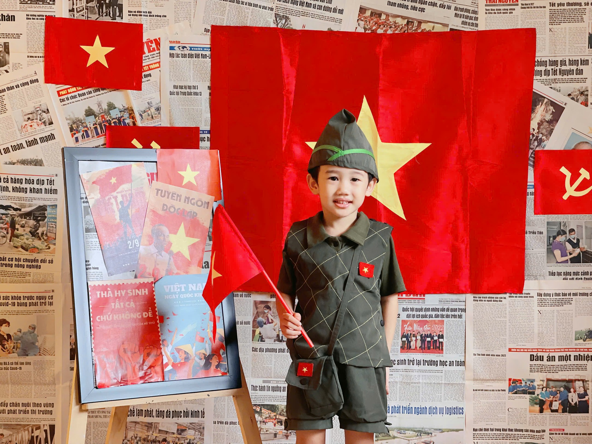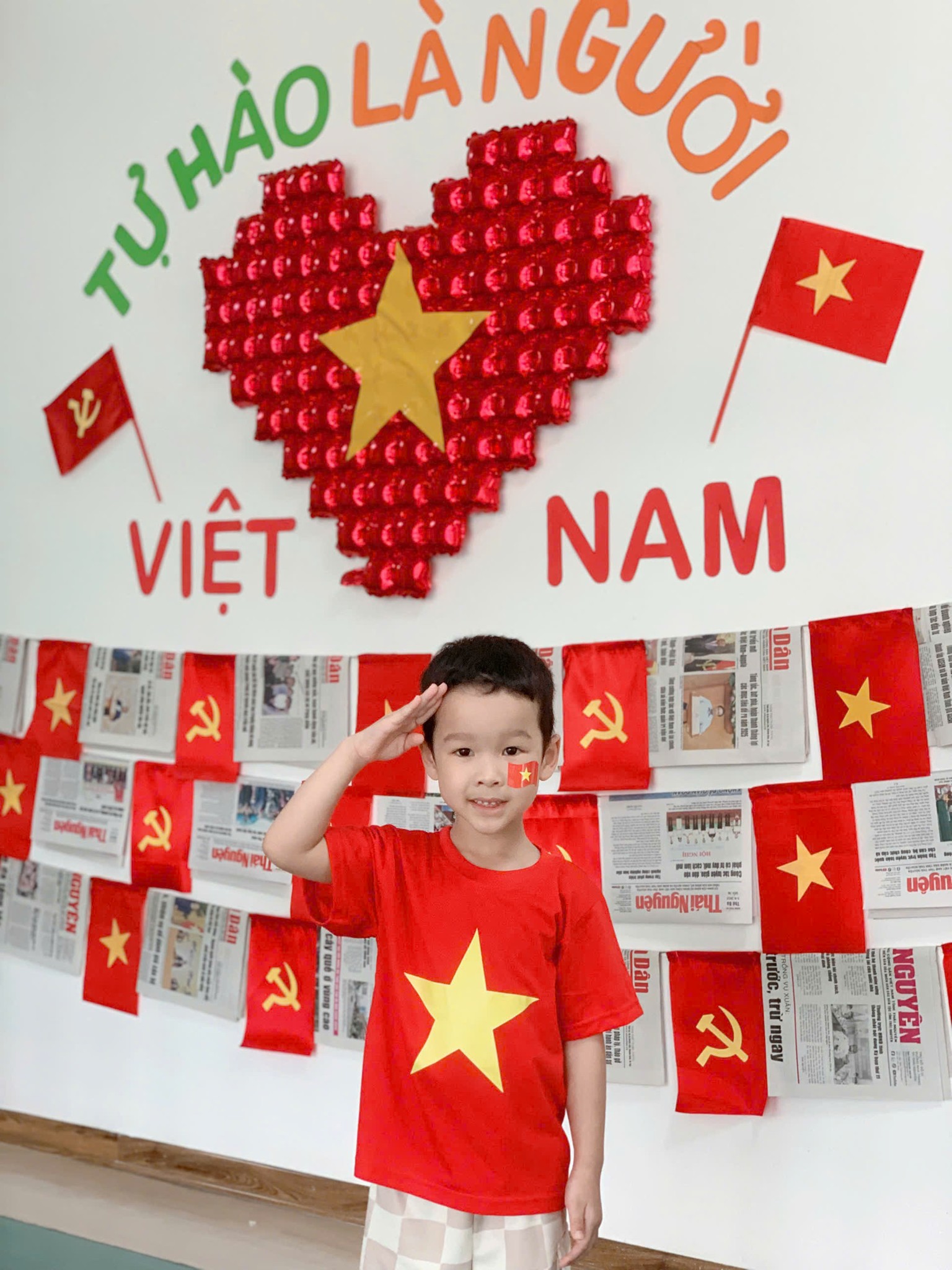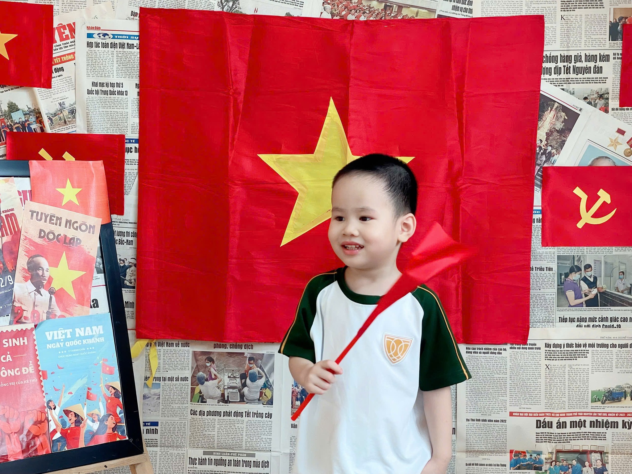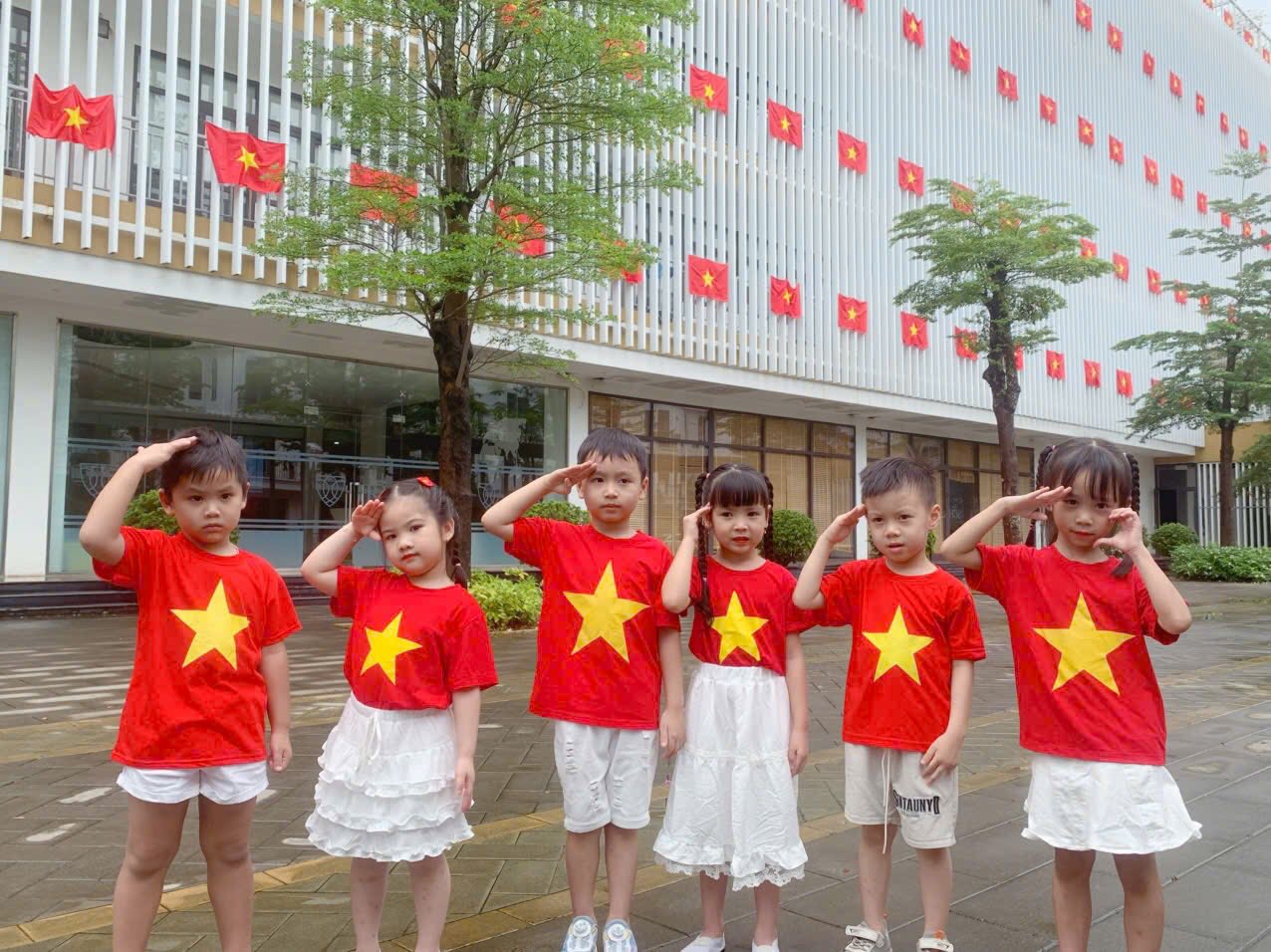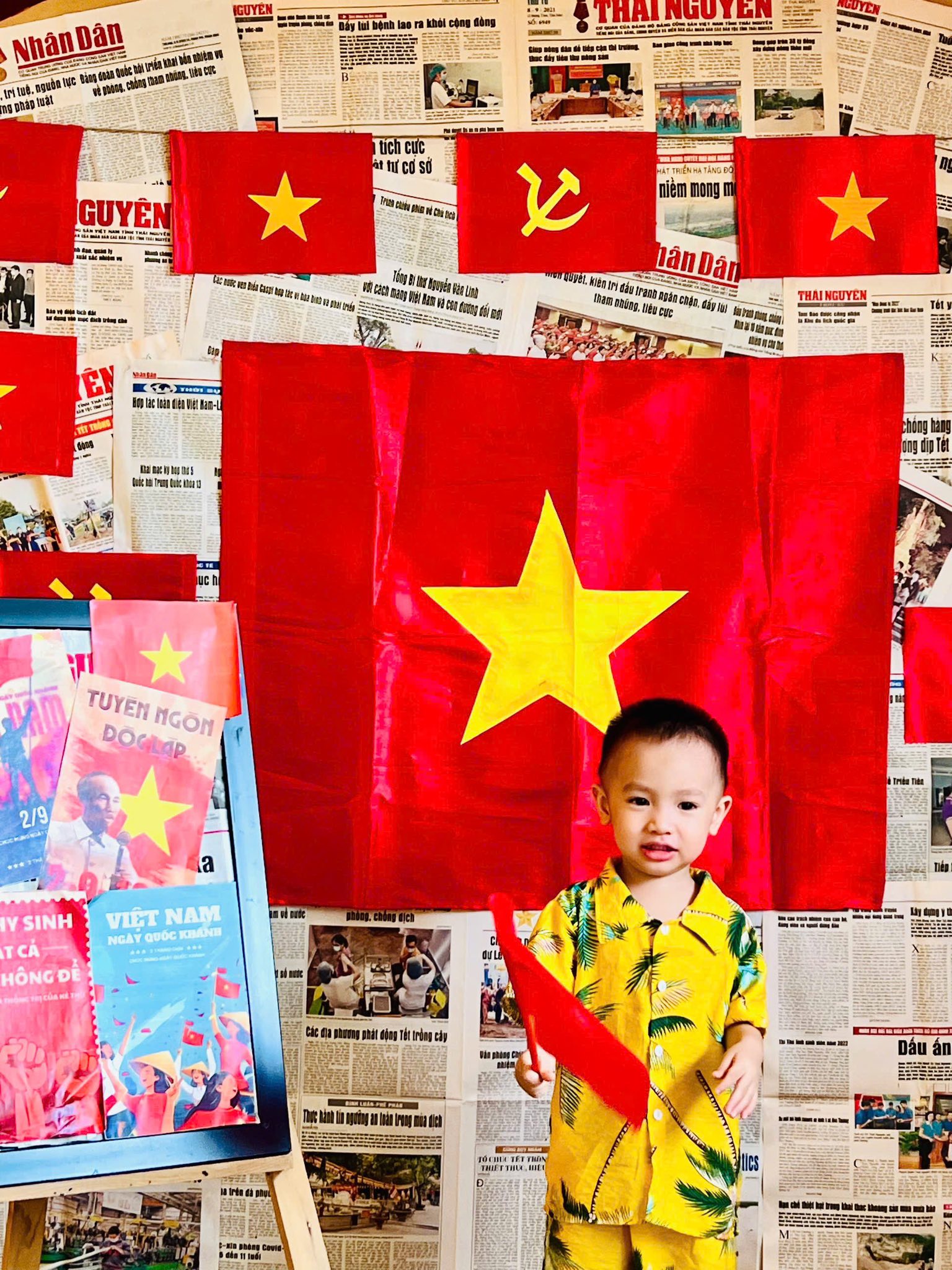Trong màu áo đỏ sao vàng, các bạn nhỏ hào hứng tạo dáng bên không gian rực rỡ cờ hoa, pano, khẩu hiệu được các cô giáo chuẩn bị đầy tâm huyết. Hoạt động chụp ảnh tuy giản dị nhưng mang đến cho các con niềm vui và khơi gợi tình yêu quê hương, lòng tự hào dân tộc.