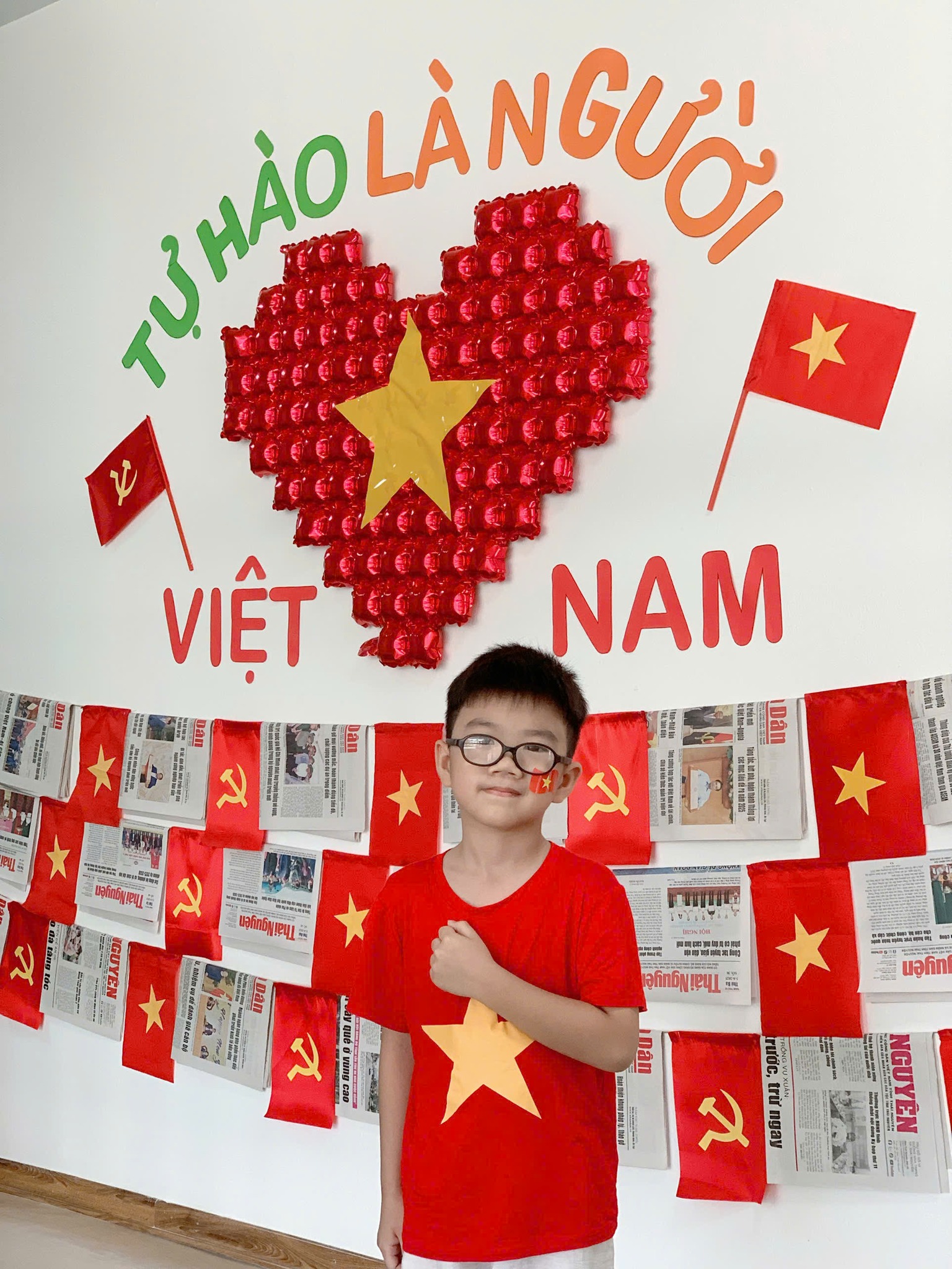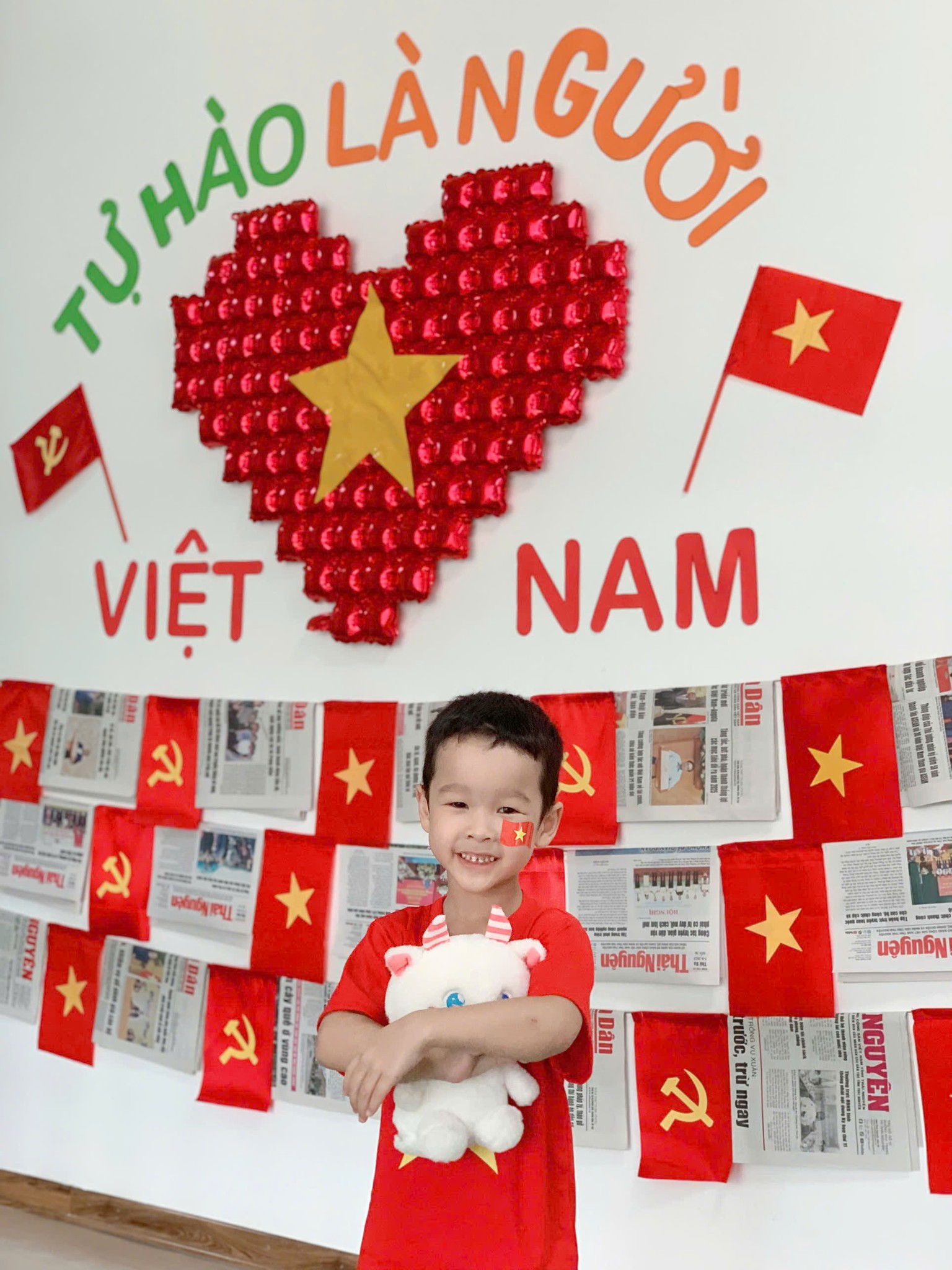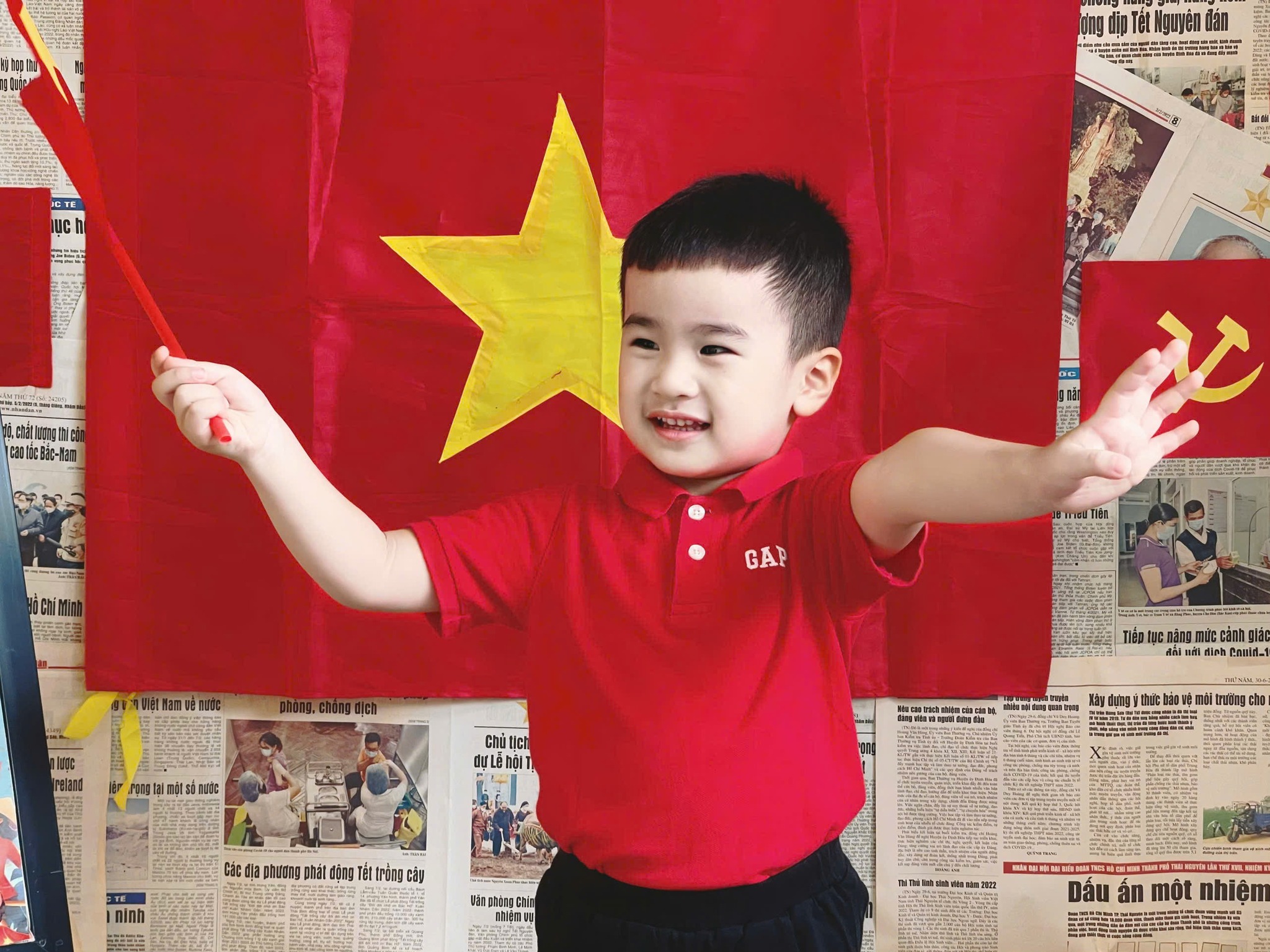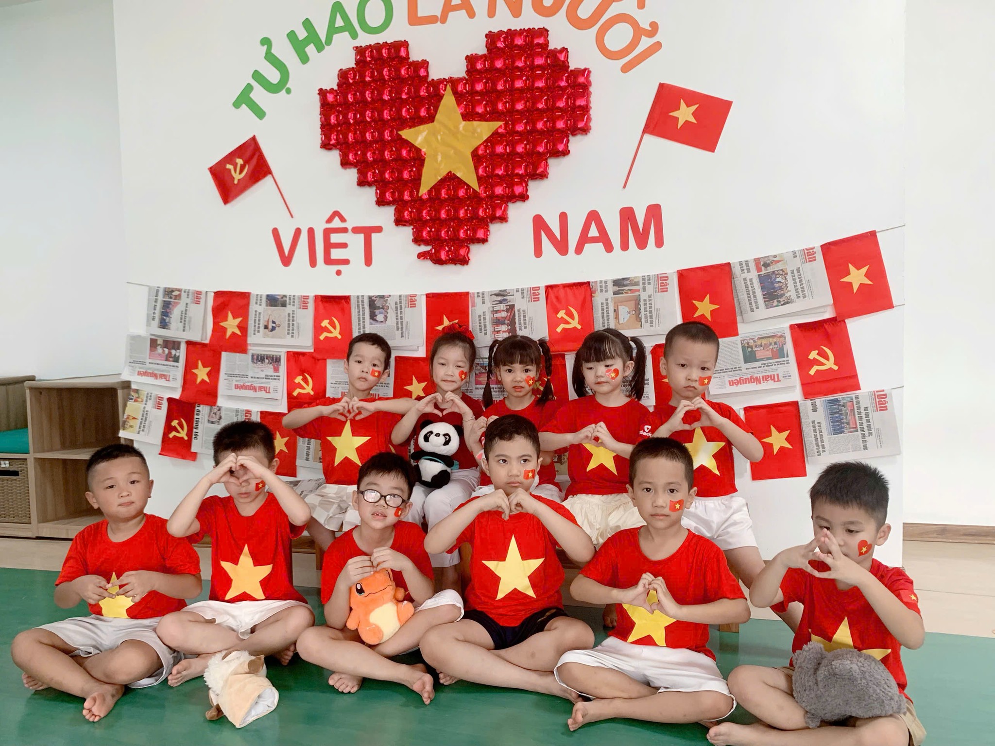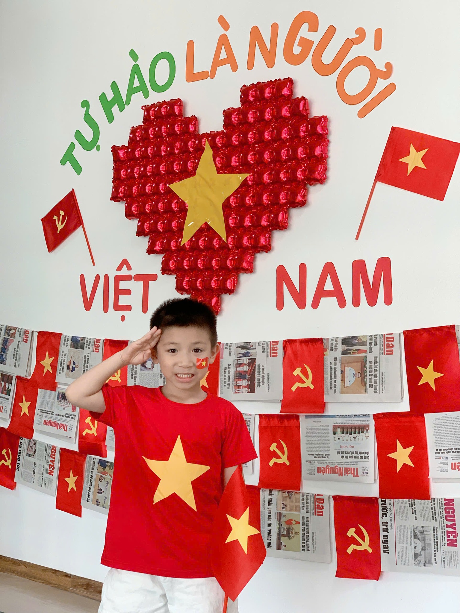 Trong màu áo đỏ sao vàng, các bạn nhỏ hào hứng tạo dáng bên không gian rực rỡ cờ hoa, pano, khẩu hiệu được các cô giáo chuẩn bị đầy tâm huyết. Hoạt động chụp ảnh tuy giản dị nhưng mang đến cho các con niềm vui và khơi gợi tình yêu quê hương, lòng tự hào dân tộc.