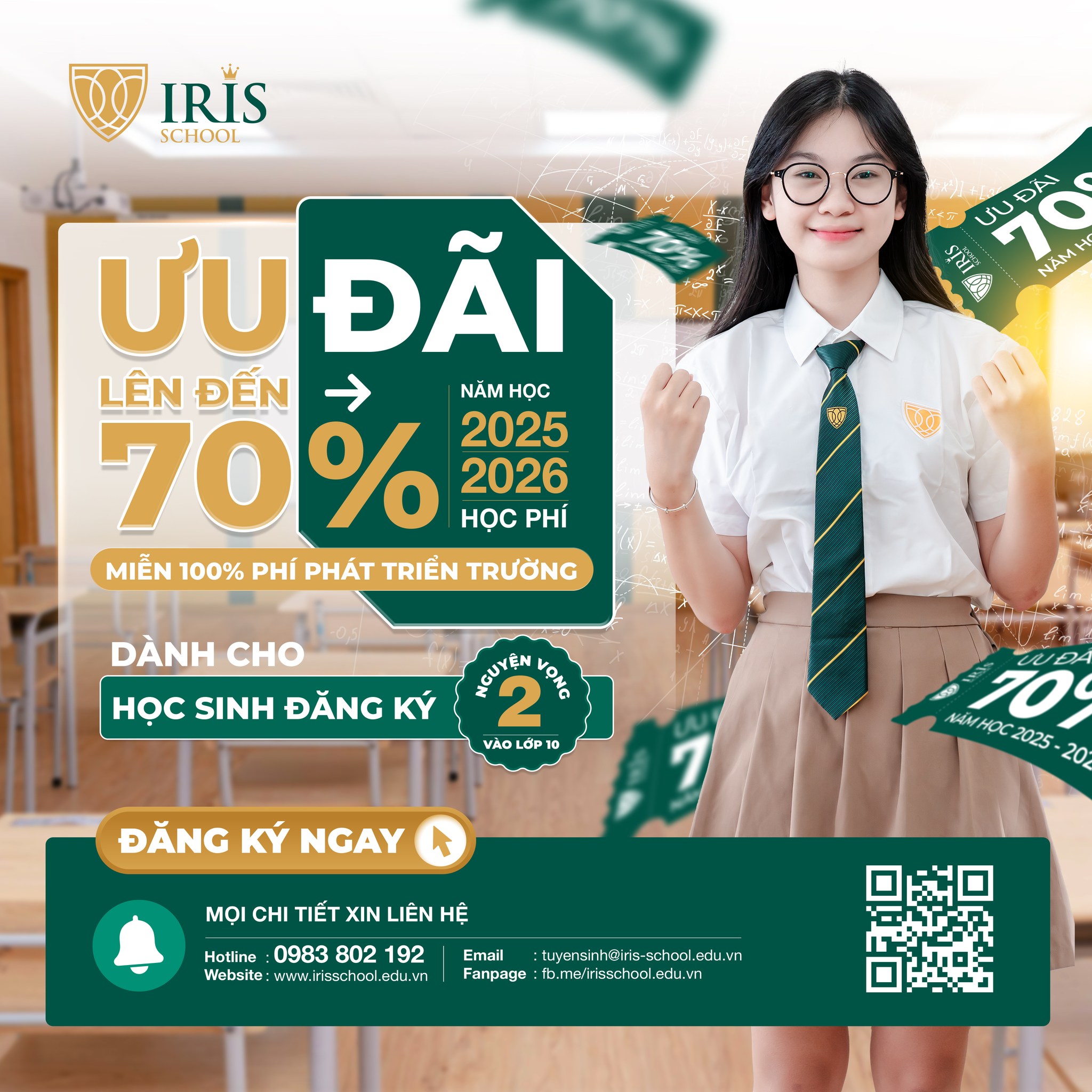 Đừng bỏ lỡ cơ hội trở thành học sinh lớp 10 của Trường Iris với chính sách ưu đãi “khủng” dành riêng cho học sinh đăng ký nguyện vọng 2!