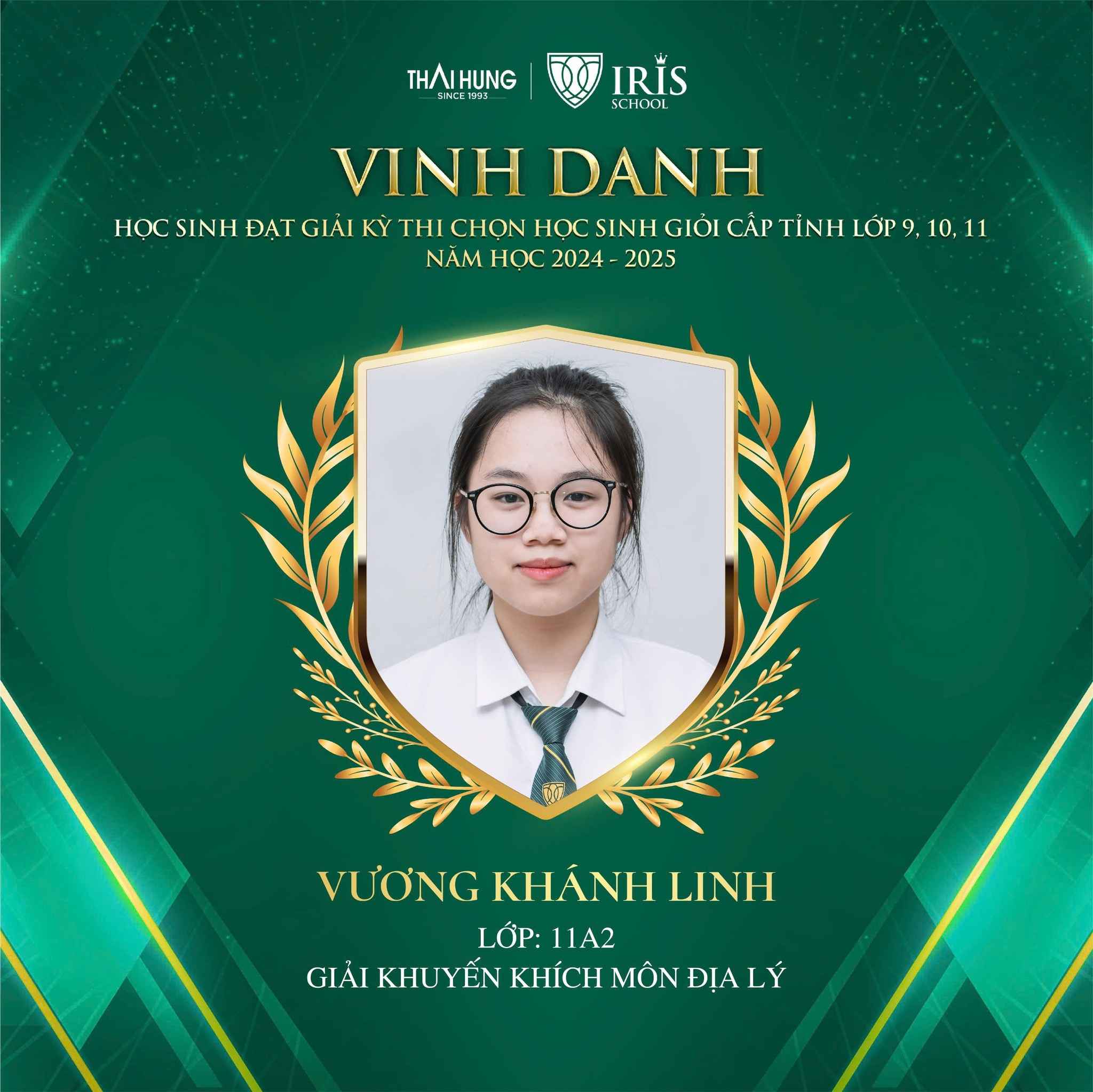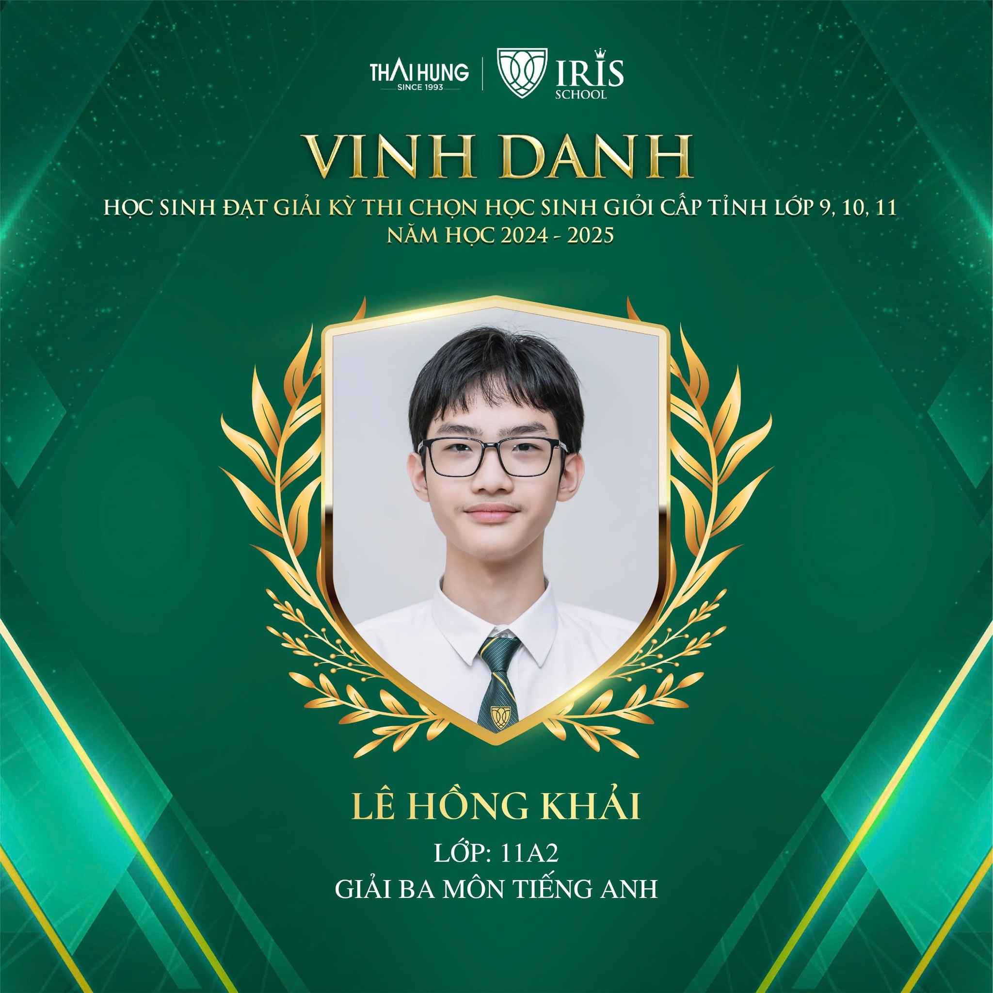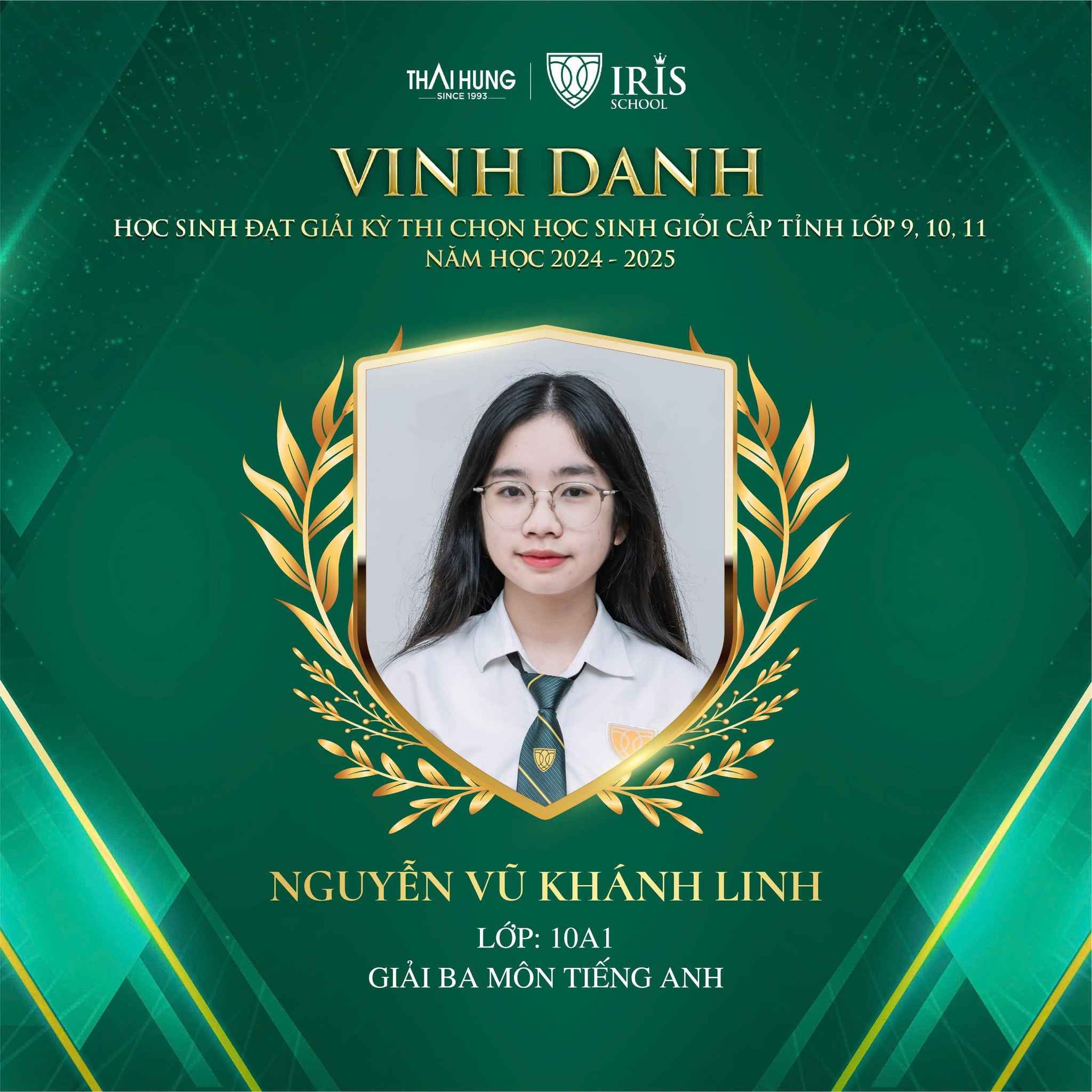 Với sự nỗ lực không ngừng cùng tinh thần chinh phục tri thức, những học sinh xuất sắc của Trường Iris đã gặt hái nhiều thành tích ấn tượng tại Kỳ thi chọn học sinh giỏi cấp tỉnh lớp 9, 10, 11 năm học 2024 – 2025. Thành quả này là minh chứng cho ý chí bền bỉ, niềm đam mê học tập của Irisers và sự đồng hành tận tâm của thầy cô, gia đình.