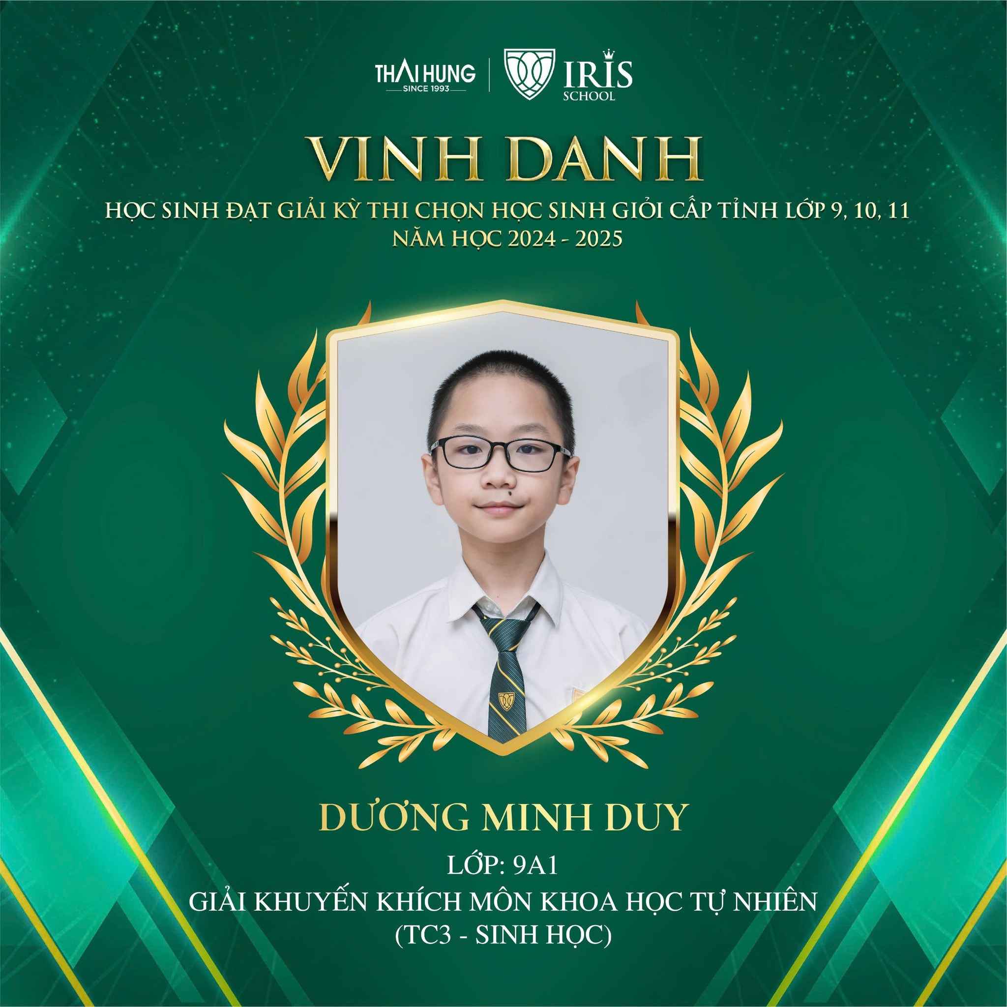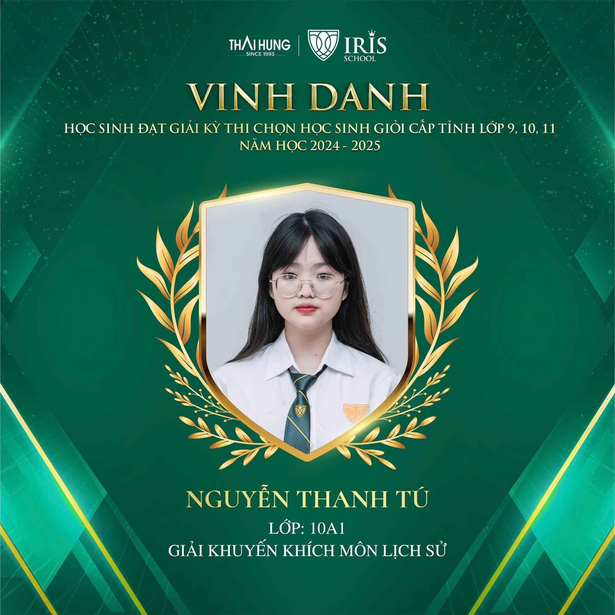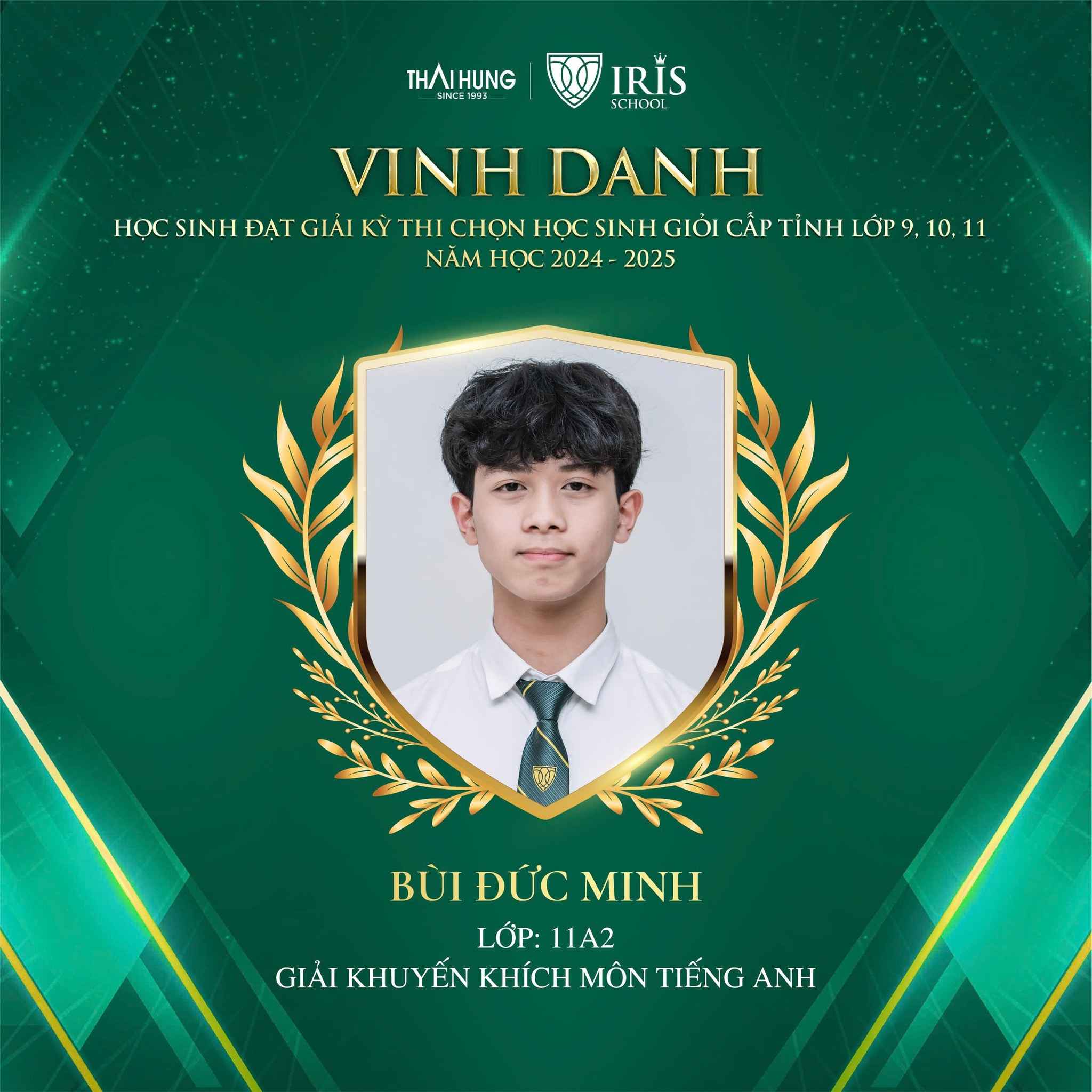 Với sự nỗ lực không ngừng cùng tinh thần chinh phục tri thức, những học sinh xuất sắc của Trường Iris đã gặt hái nhiều thành tích ấn tượng tại Kỳ thi chọn học sinh giỏi cấp tỉnh lớp 9, 10, 11 năm học 2024 – 2025. Thành quả này là minh chứng cho ý chí bền bỉ, niềm đam mê học tập của Irisers và sự đồng hành tận tâm của thầy cô, gia đình.